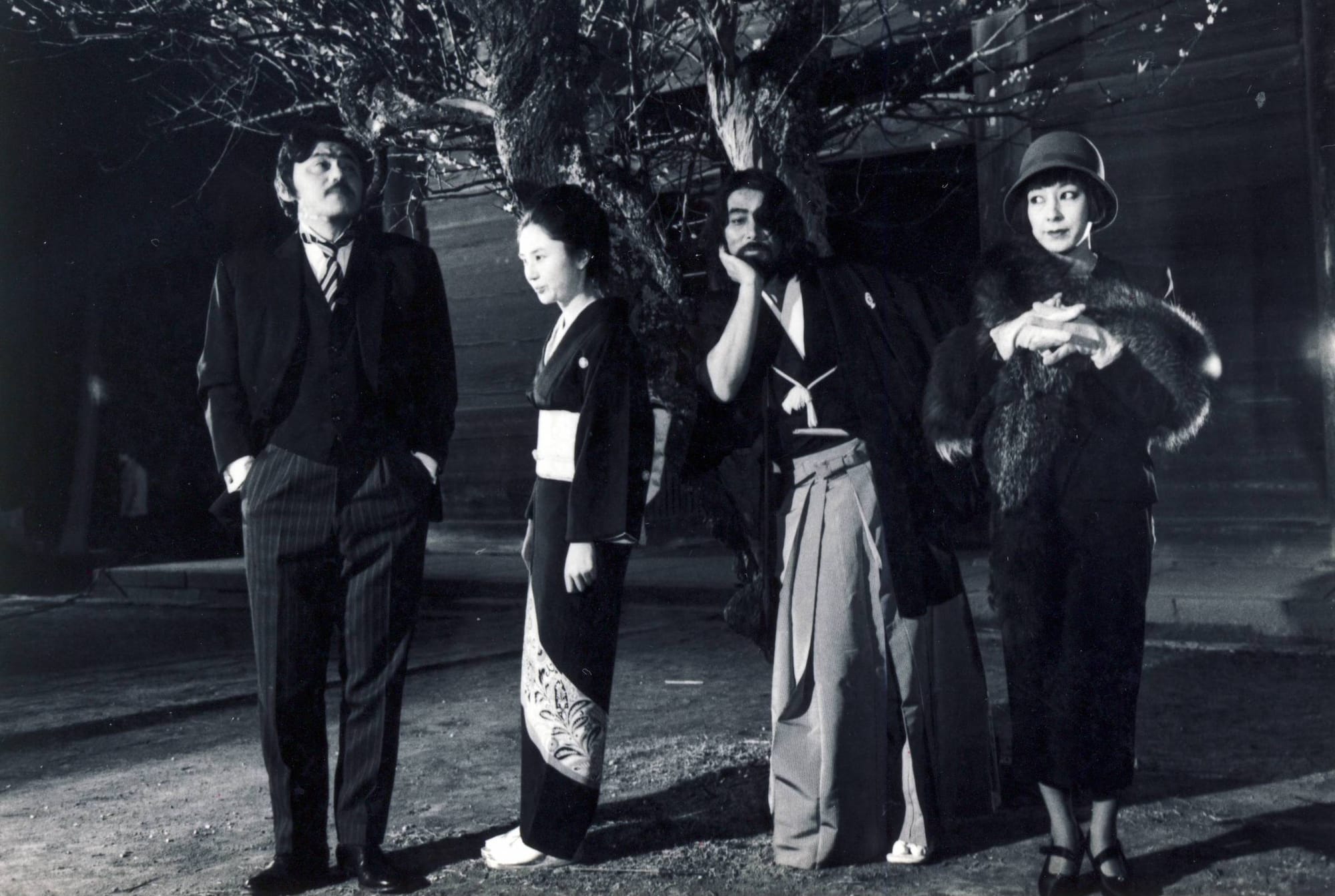 The other films in the series all examine the era’s outsized cultural legacy. Seijun Suzuki’s Zigeunerweisen (1980) relates the bizarre and tragic occurrences that befall a love triangle between a German professor, a man suspected of murder, and a geisha named Koine. The story is tied together through a real-life recording of the 19th-century musical score “Zigeunerweisen,” in which composer Pablo de Sarasate's voice is briefly heard.