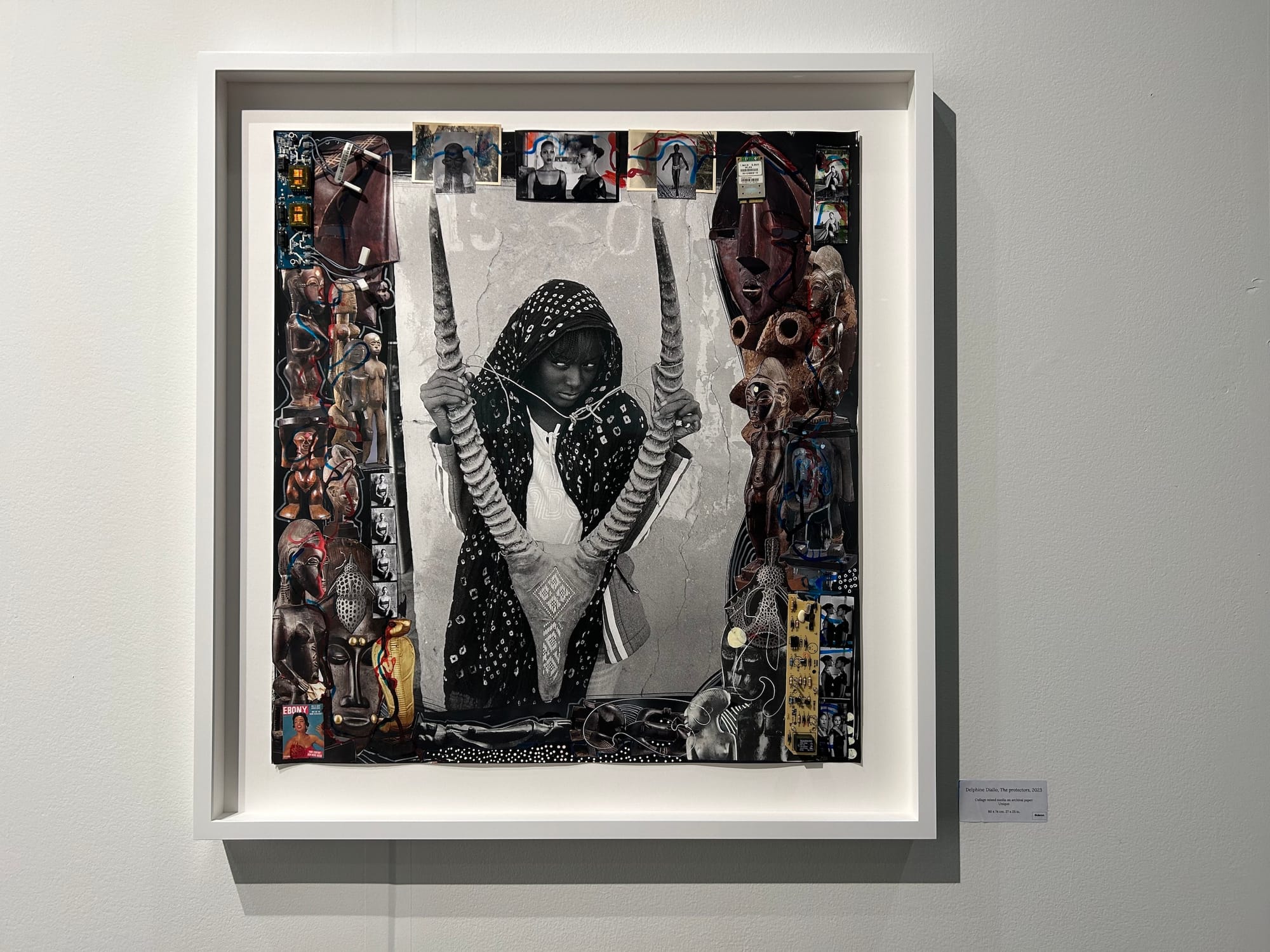 Franco-Senegalese visual artist Delphine Diallo, whose powerful mixed-media collages at the Fisheye Gallery booth mix iconographic portraiture, African cult objects, and sprinkled with technological bits, expressed a similar openness to AI.