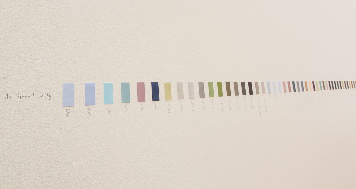 “His interest in light, landscape, and history make him a perfect fit for Utah, where the desert light is so unique and our geological and cultural history is written so visibly in our landscape,” Tassie told Hyperallergic. “His Pantone installation brings a specific landscape into the museum by using color and language to engage memory and imagination in the recreation of a journey.” Spiral Jetty, notably, is also Utah’s official state work of art.