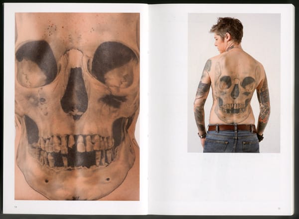 While searching for answers to the questions raised about art and tattoos in London Tattoos, I was reminded of the art critic Peter Schjeldahl who suggested in a lecture at SVA last fall, “when in doubt, make distinctions.” In that vein some tattoo artists are artists, and some tattoos are art. Not all tattoos, however, need to be or even try to be art, and it’s important to distinguish between the two: most things are not art by default, and almost anything can become art through intention. The majority of Londoners in MacNaughton’s photographs don’t consider their tattoos works of art, and they don’t value them any less because of it. As one Londoner states, “let’s face it, art’s a personal thing at the end of the day.”