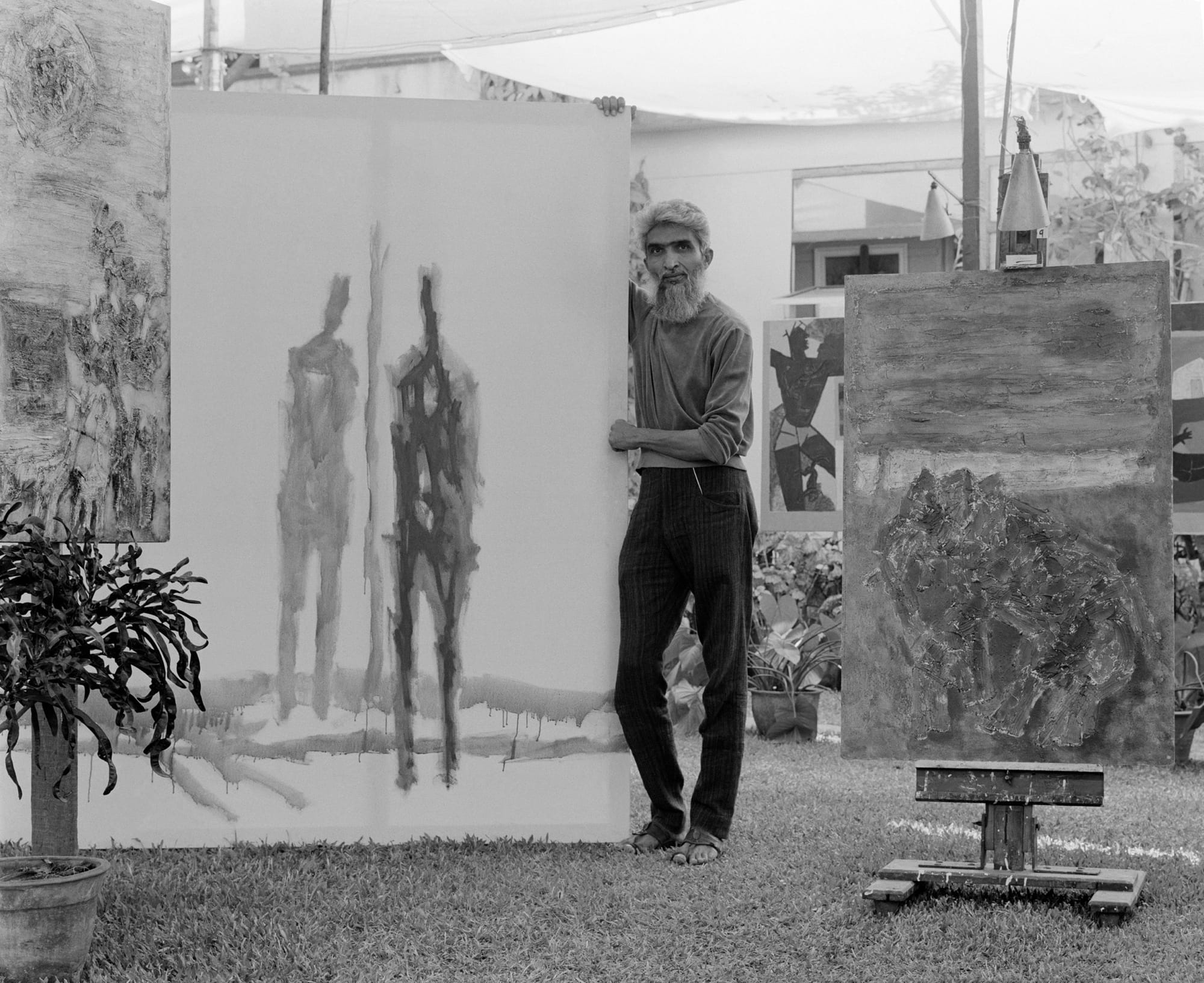 For Light Works, Kavi Arya, along with his mother and Gadihoke, deliberately chose mostly black-and-white images — specifically of certain personalities and from his father’s earlier works — because they wanted to focus on what he termed the “classic era,” a perceived golden age of Indian cinema in the 1960s and 1970s. He also emphasized that his father’s interest in classical music and the arts contributed to his aesthetic. (In an interview with Live Mint, Kavi Arya discusses the influence of Rembrandt in his use of light in photography.)