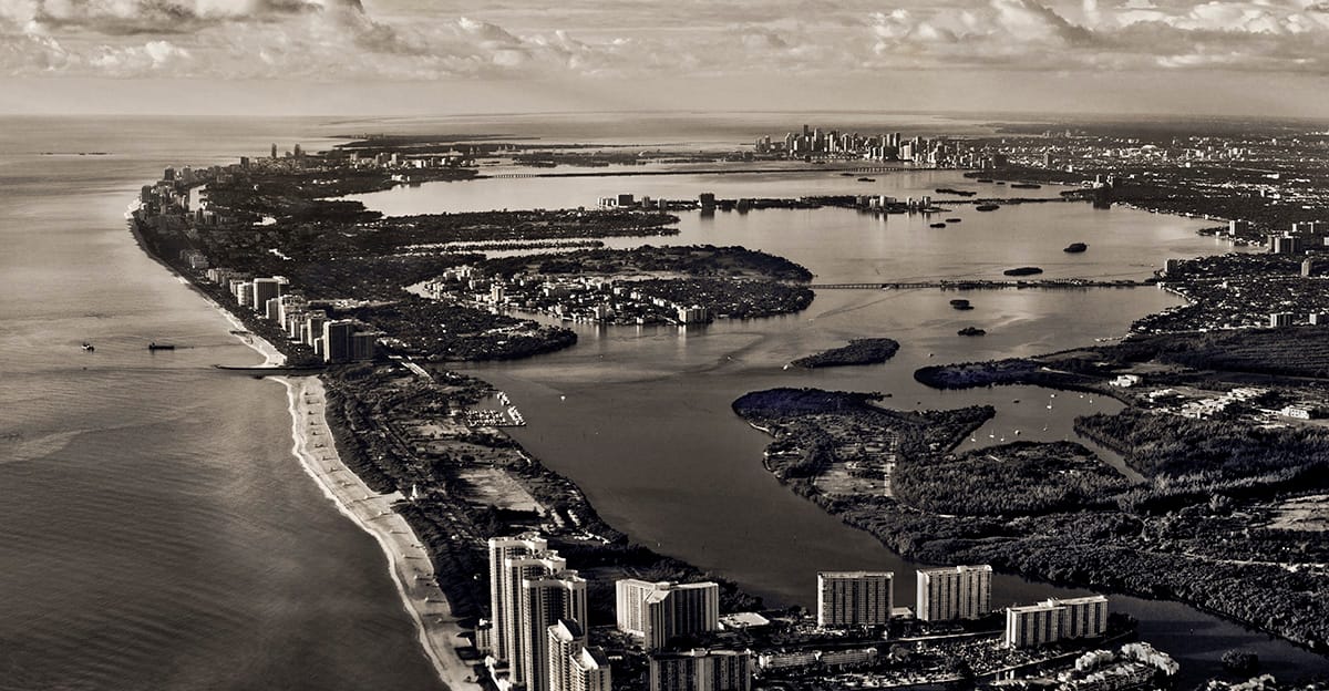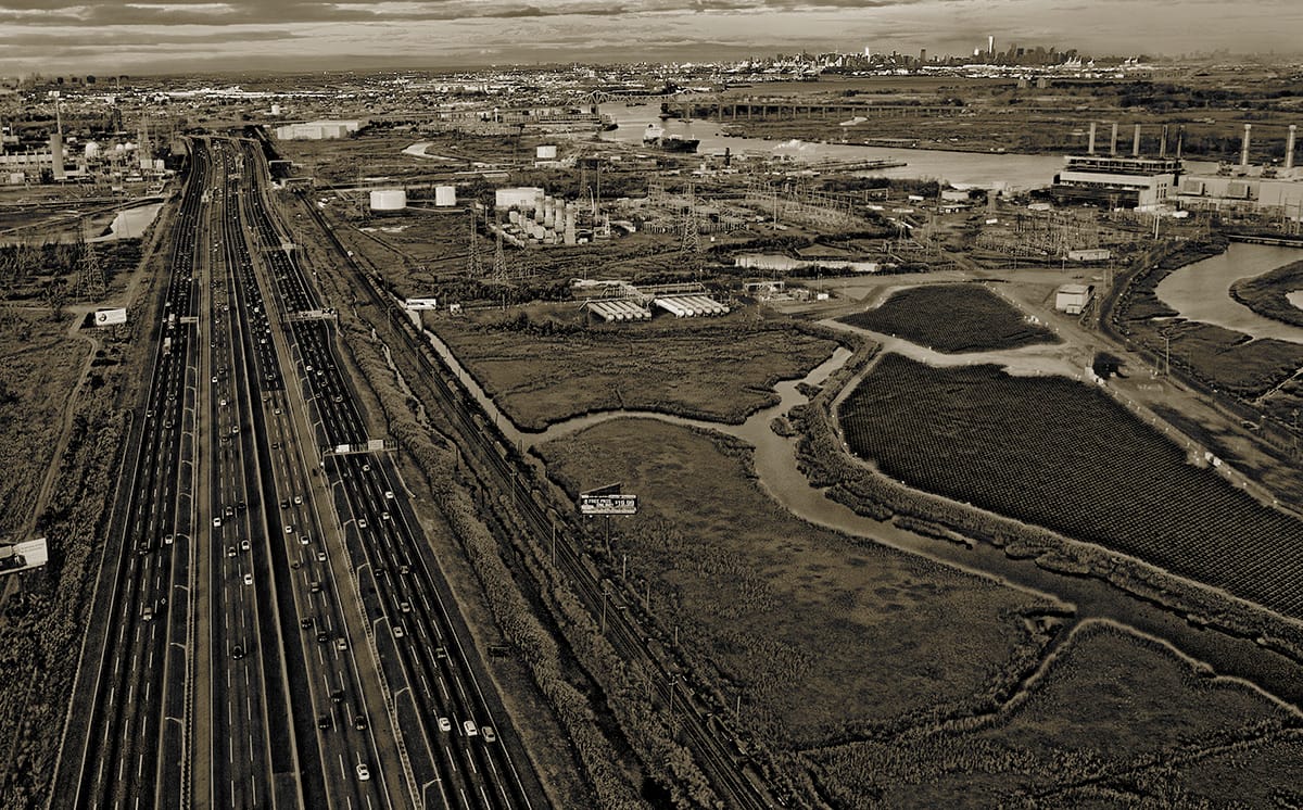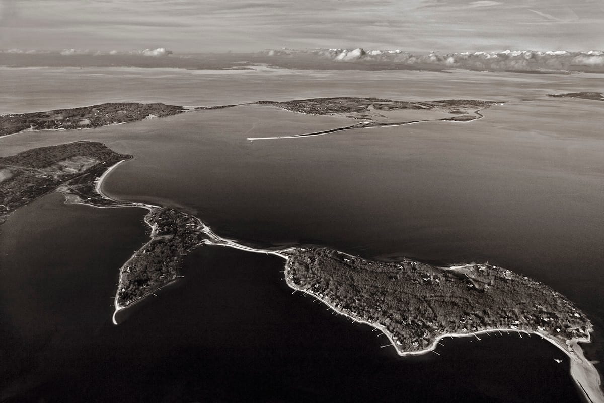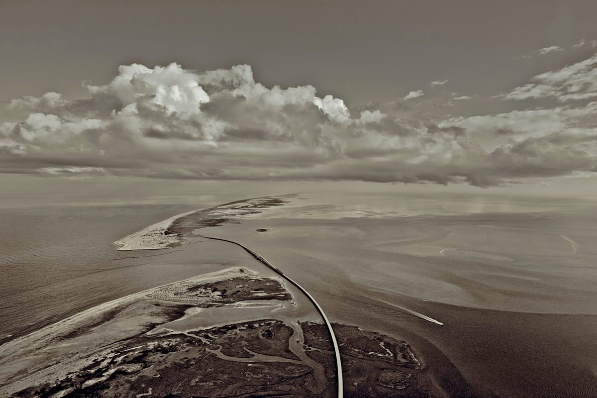 “On our older, low lying Atlantic Coast, the present danger is due to rising seas caused by climate change and the resulting warming temperatures,” Freese told Hyperallergic. “Ice melts and the sea rises. In East Coast: Arctic to Tropic, this peril becomes even more evident when photographing from the air, a viewpoint that reveals a fragile, vulnerable coast with the sea at the brim.”