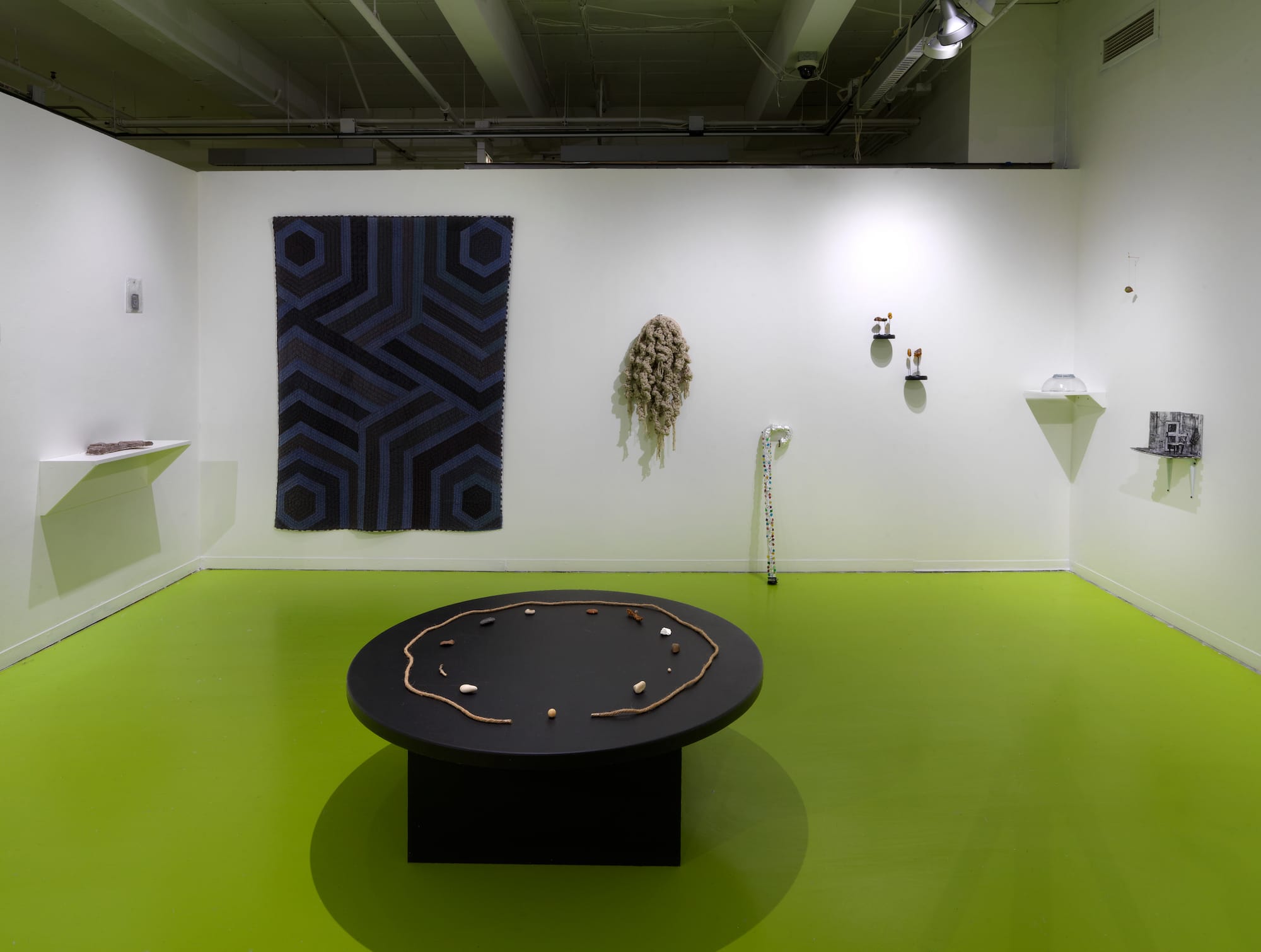 An alternate panacea is to build a new community where you live. To do so, Soto and her partner, Dan Sullivan, founder of her longtime fabricator Navillus Woodworks, constructed a wooden gazebo in their backyard in 2012, complete with diagonal slat walls and a robust exhibition schedule. The Franklin, named for the boulevard on which their modest home in the Garfield Park neighborhood sits, has shown hundreds of artists over the years. A choice sampling is on view in Amuleto, a group show co-organized with Mayfield, a newish gallery run by father-daughter duo Alberto and Madeleine Aguilar out of their family home and garage in Forest Park. On view simultaneously at HPAC, The Franklin, and Mayfield, it features talismanic objects contributed by 50 local artists. The convenience of consolidating the programs of two outlying spaces with very limited hours into an accessible institution open seven days a week cannot be overstated.