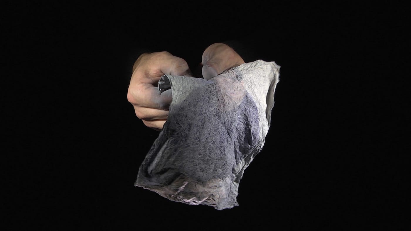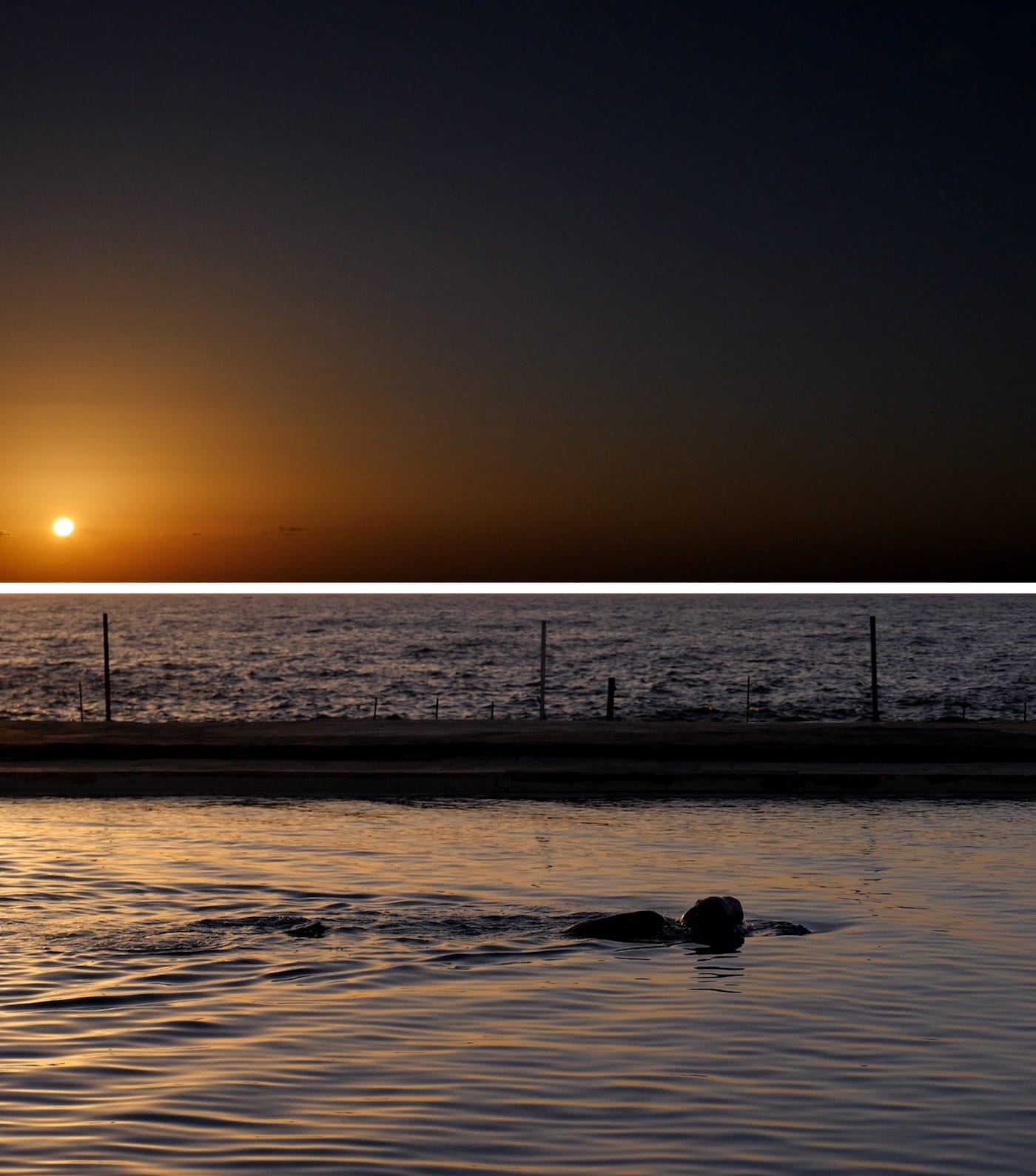 Some other projects contemplating the tension between artistic gesture and depletion are Ismail Bahri’s looped video “Revers” (2016) and Nesrine Khodr’s newly commissioned video installation “Extended Sea” (2017). Here we find Tohmé’s idea of ebbing and flowing at its most poetical and, perhaps, artistically radical. Bahri’s video shows the artist’s hands in close-up crumpling up a magazine cover, and as he flattens the paper and scrunches it up, again and again in a repetitive ritual, the ink, and by extension the image, transfers to his hands. An act of visual and tactile erasure has paradoxically become the artistic gesture that creates Bahri’s image. More durational back-and-forth is to be found in Khodr’s two-channel video, which sees the artist doing laps for 12 hours in an outdoor pool in Beirut with one camera trained on the pool and one on the sky. Here it is invisible physical exhaustion vis-à-vis physical performance, as well as the slow passing of time, that create a hypnotic and immersive experience. Political readings offset the outstretched possibility of the sea and the horizon with the confines of the pool and the region’s shrinking mobility. For Lebanon — with a closed border with Israel in the south and complicated access to Syria due to its grueling civil war — the sea may well be the only way out.