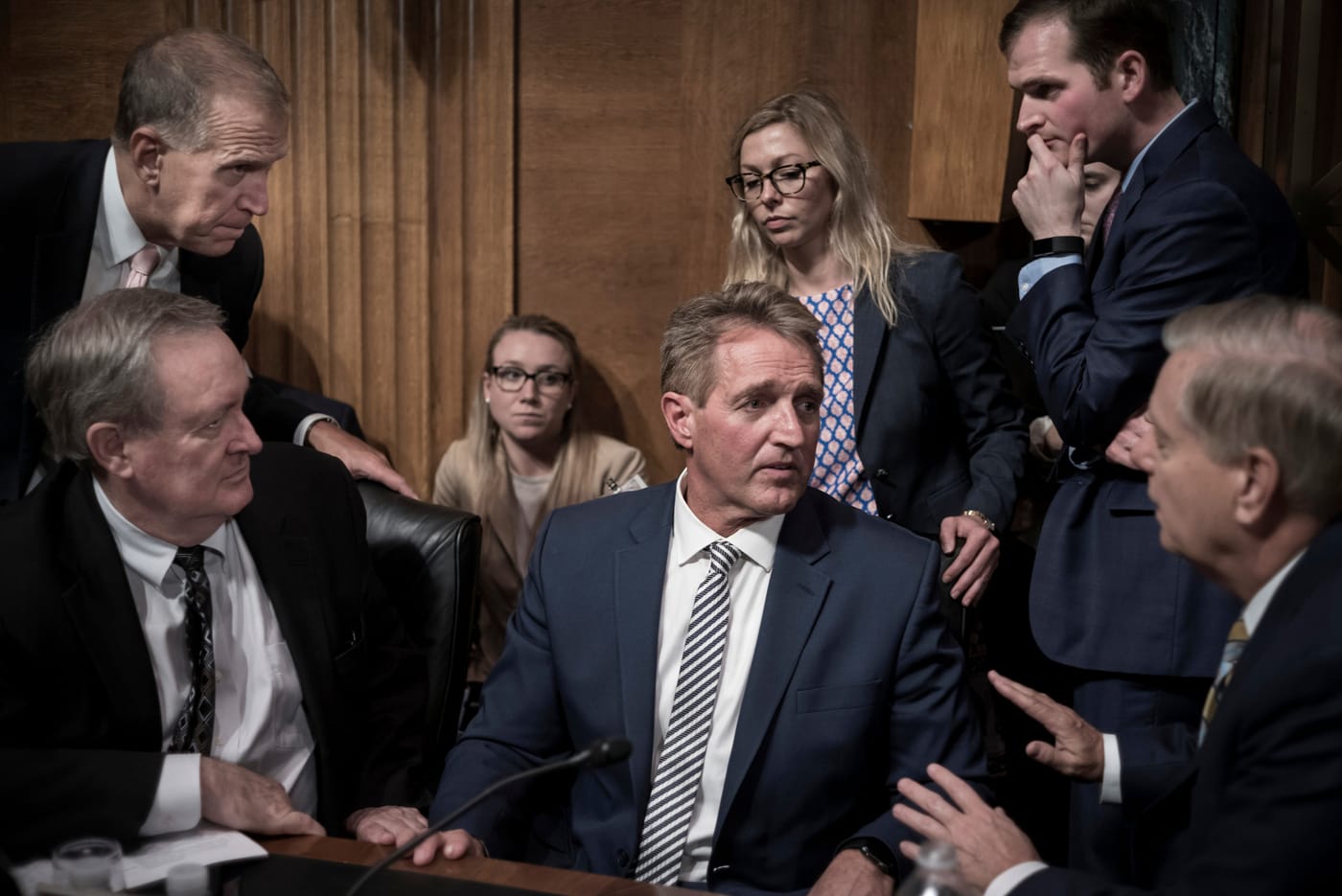As we move through Act II, the focus becomes more specific to the unprecedented politics unfolding in the Capitol — more Trumpian content, more Senate hearings, more wide shots that intentionally highlight the sheer preponderance of media coverage attendant to all these proceedings — but there are still quiet moments, like indistinct rows of men and women, framed from the knees down, capturing legs identically crossed, hands identically folded. They are there watching, and therefore complicit extras in the staging of these political plays.