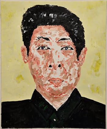 Eight artists were asked to envision “a state and culture that is shrouded in secrecy, being both the producer and victim of oppositional propaganda mechanisms.” The first thing Feary did was boldly approach a special art center in Melbourne, Australia that supports artists with “intellectual disabilities.” The residents were given standard photos of Kim Il-sung and Kim-Jong-il, display items compulsory in all houses and buildings inside North Korea. The residents were not told whom the pictures represented, a decidedly opposite approach of state supported propaganda painters in the DMZ. The conflicting tensions of the two portraits by Peter Cave highlight the backward alchemy of authority, image making and meaning stripped lean by the characters anonymity through their outrageous and hilarious decontextualization.