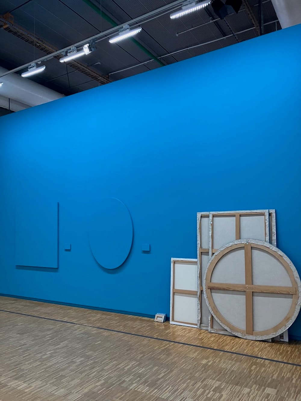 PARIS — In the permanent collection of the Centre Pompidou an installation was often seen taking up a complete wall in the galleries. Any number of rectangular canvases of various sizes were leaning against it or hung conventionally, some small and another three or four or five feet high, plus one or two tondos. Everything, including the wall, was painted the same color. One or two canvases were always placed so the reverse side, with the bare canvas or linen and the stretcher bars, would be visible.
