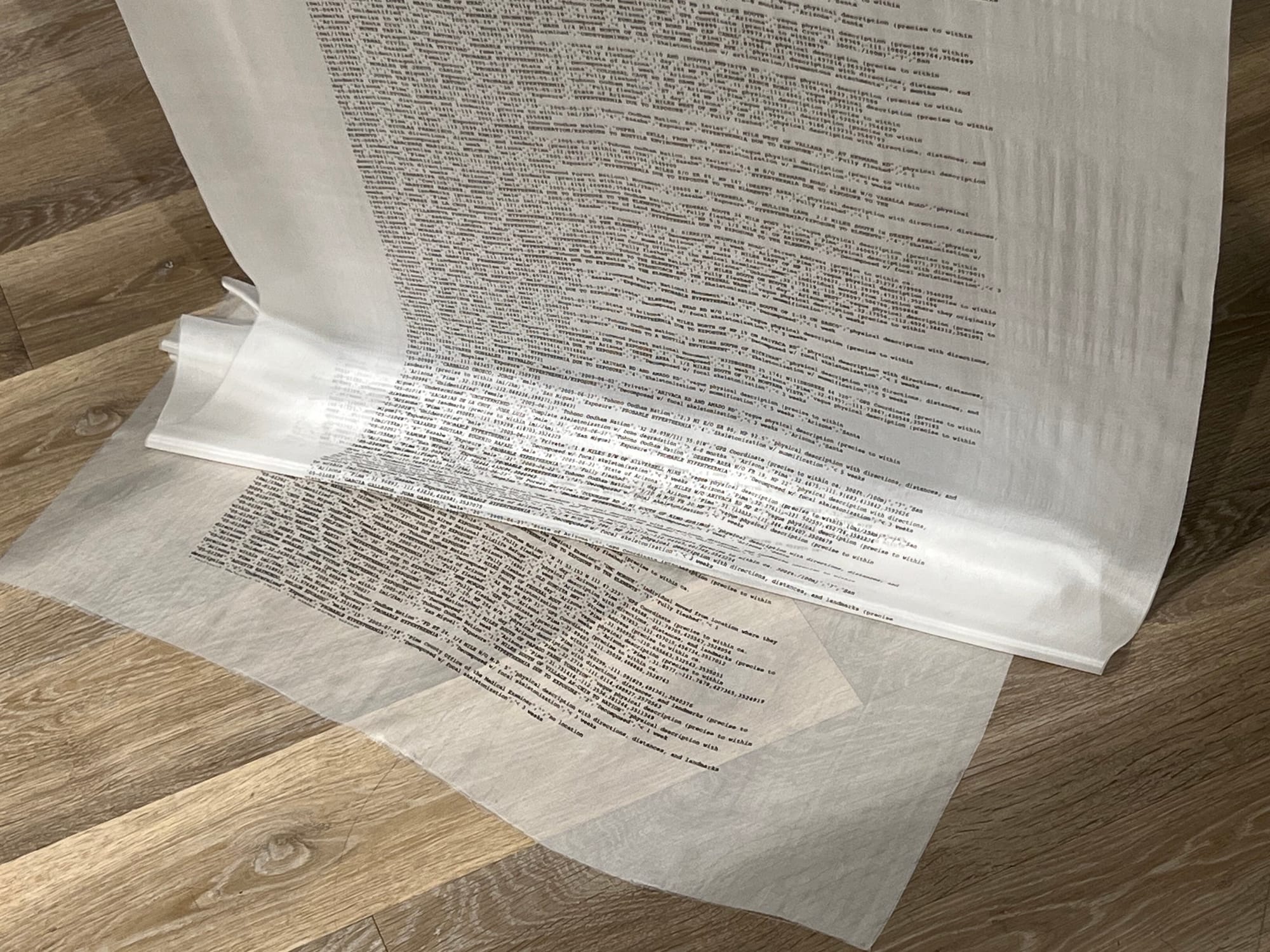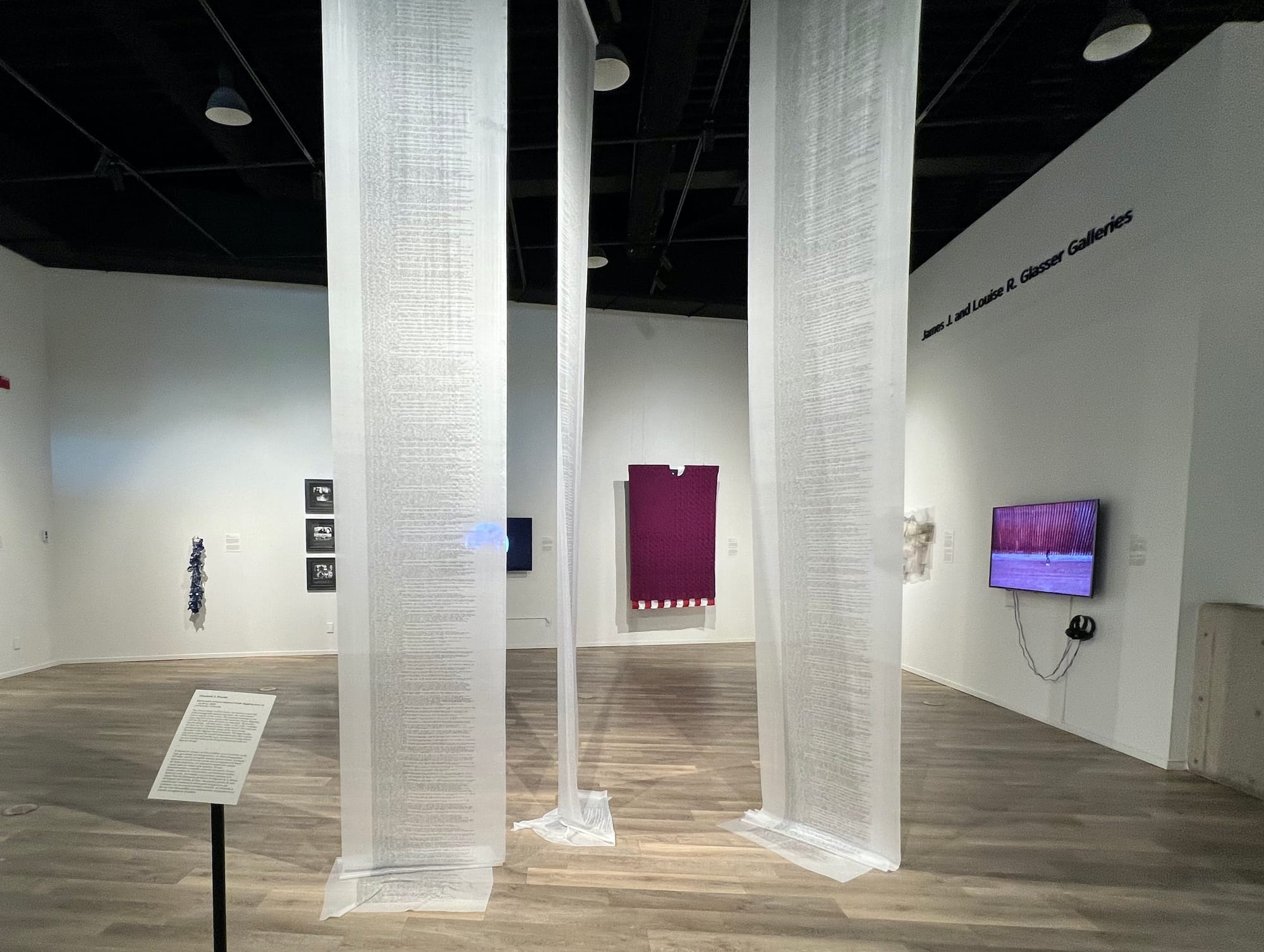 TUCSON, Arizona — Three long panels of Habotai silk hang from the ceiling inside Tucson Museum of Art, site of the 2023 Arizona Biennial. Text, printed onto the silk in archival pigment, documents migrant deaths in the desert. Photographer Elizabeth Z. Pineda sourced the information from the archives of the medical examiner for Pima County, where the museum resides, and the Tucson-based nonprofit Humane Borders.