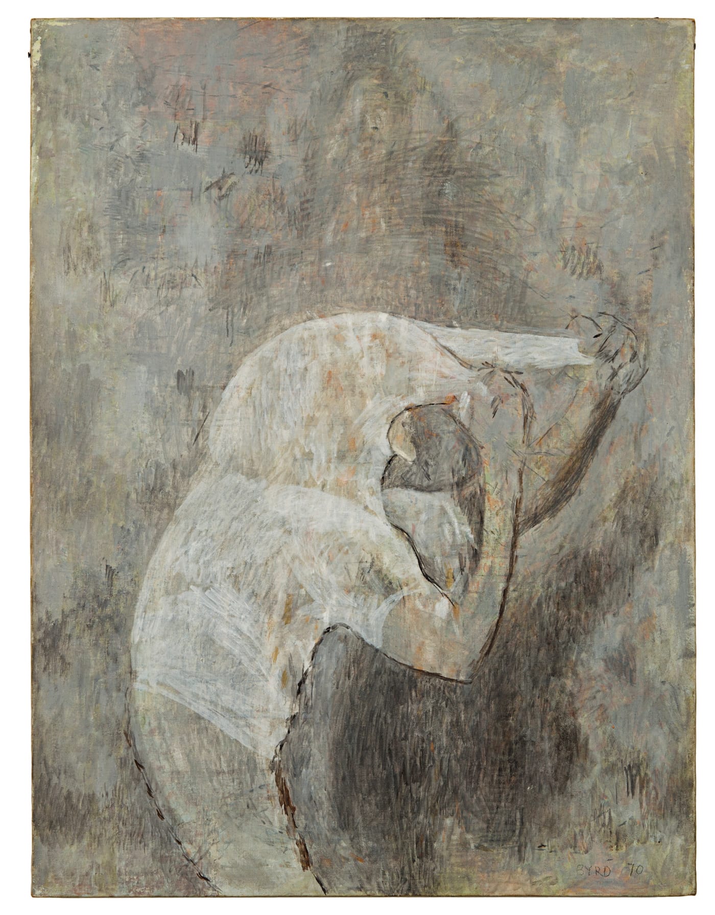 Trained as a modernist in New York City in the late 1940s under the French cubist Amédée Ozenfant, Byrd was a life-long recluse who worked outside the purview of the art world. From the late 1950s until the late 1980s, the artist eked out a living as an orderly at the psychiatric ward of the Veterans’ Administration Medical Hospital in Montrose, New York. A keen and sensitive observer of the VA hospital’s patients — soldiers who fought during WWII, Korean War and Vietnam — Byrd made the psych ward one of the primary subjects of his art, continuing to paint its patients, rooms and routines from memory for another quarter of a century after retirement.