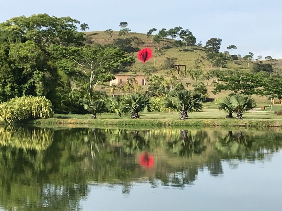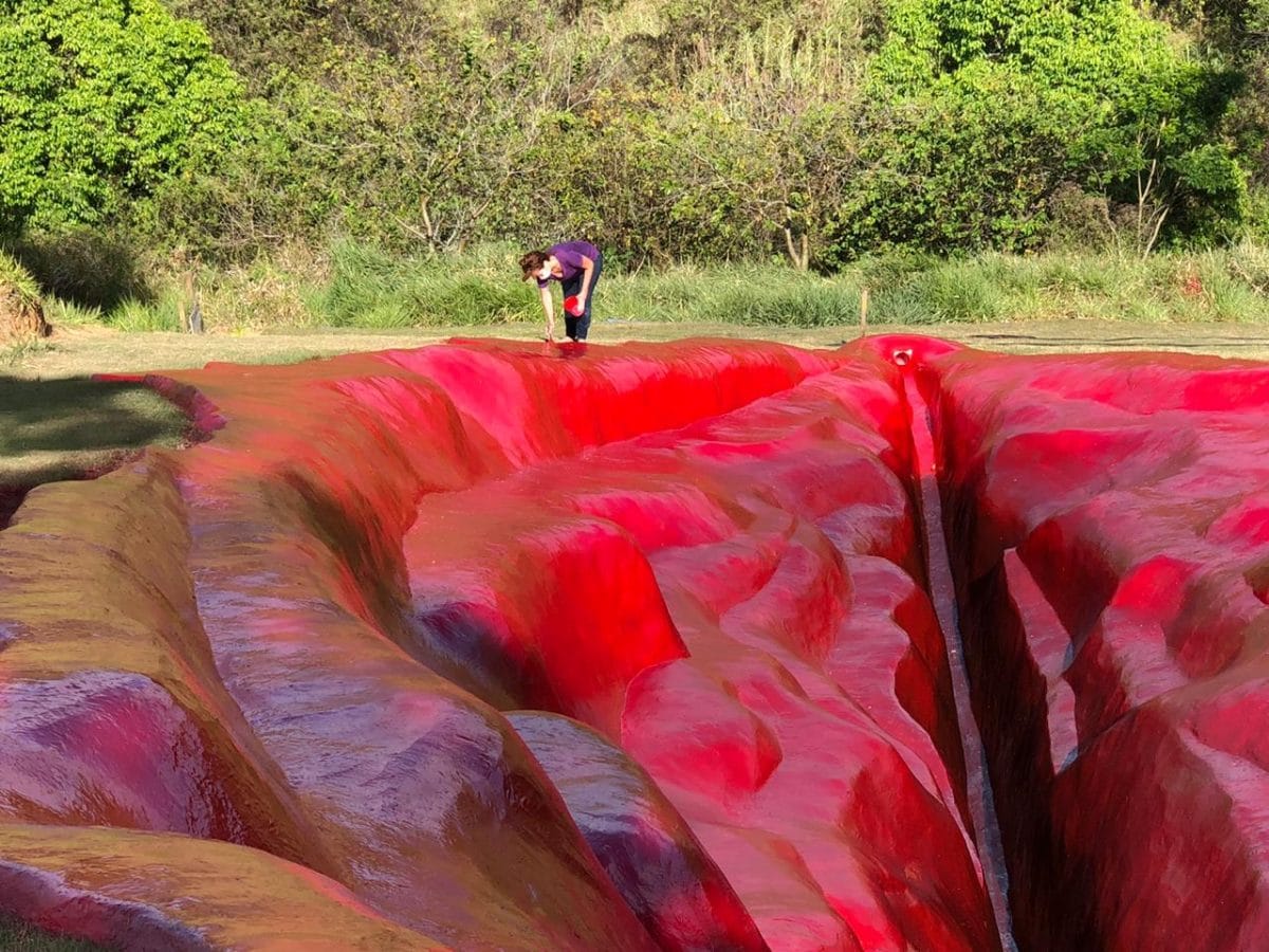 She created the massive, bright red land artwork, titled "Diva," on the grounds of the Usina de Arte, a former sugar mill transformed into an arts incubator in the town of Água Preta in Pernambuco. The piece was conceived during a residency organized by the Usina de Arte and the Museum of Modern Art Aloisio Magalhães (MAMAM).