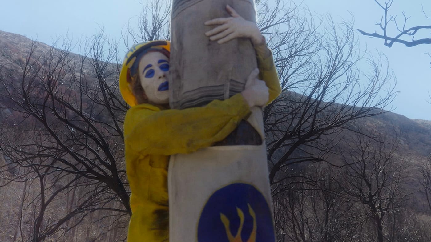 The roots of the project lie in My Golem (2017–2020), Julie Weitz’s reinterpretation of the sculpted figure that is brought to life to protect the Jews of 16th-century Prague from persecution, according to Jewish folklore. Weitz’s Golem tackles contemporary issues, from rising Fascism and intolerance to ecological collapse. In her 2021 film project Prayer for Burnt Forests, Weitz appears as a firefighting Golem confronting the devastating Southern California wildfires. Her character wears tzitzit, which she co-designed with Spector, a self-taught textile artist. In the video, Weitz removes her tzitzit and wraps it around a burnt tree trunk, as though covering a dead body, in a kind of mourning ritual. In doing so, she came to appreciate how “this garment has real power, it’s not just a costume,” she told Hyperallergic. She began thinking about what it would mean to wear tzitzit outside of a performative context.