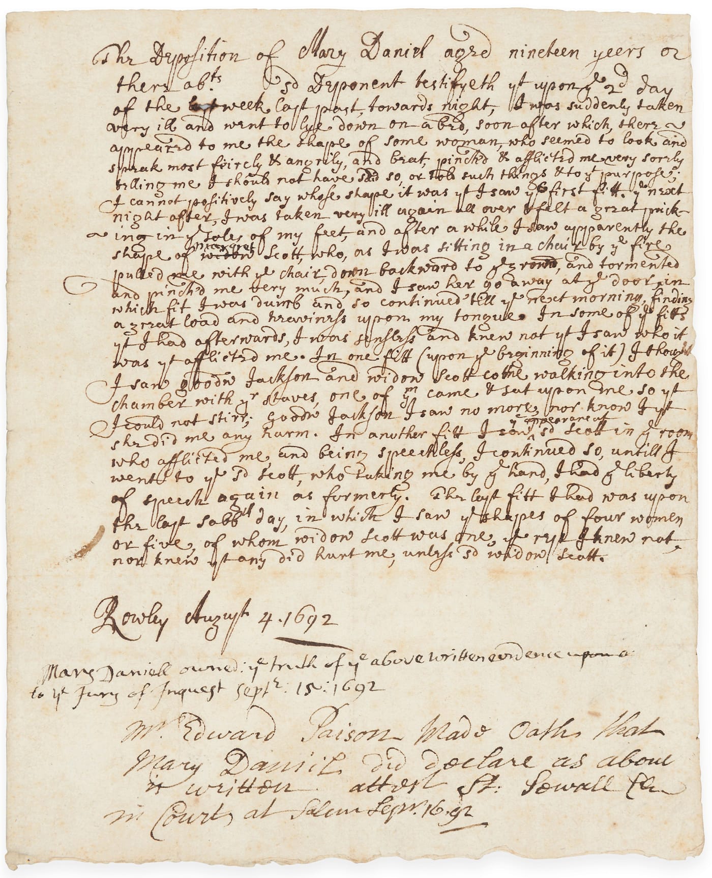 A Rare Deposition from the Salem Witch Trials Goes to Auction