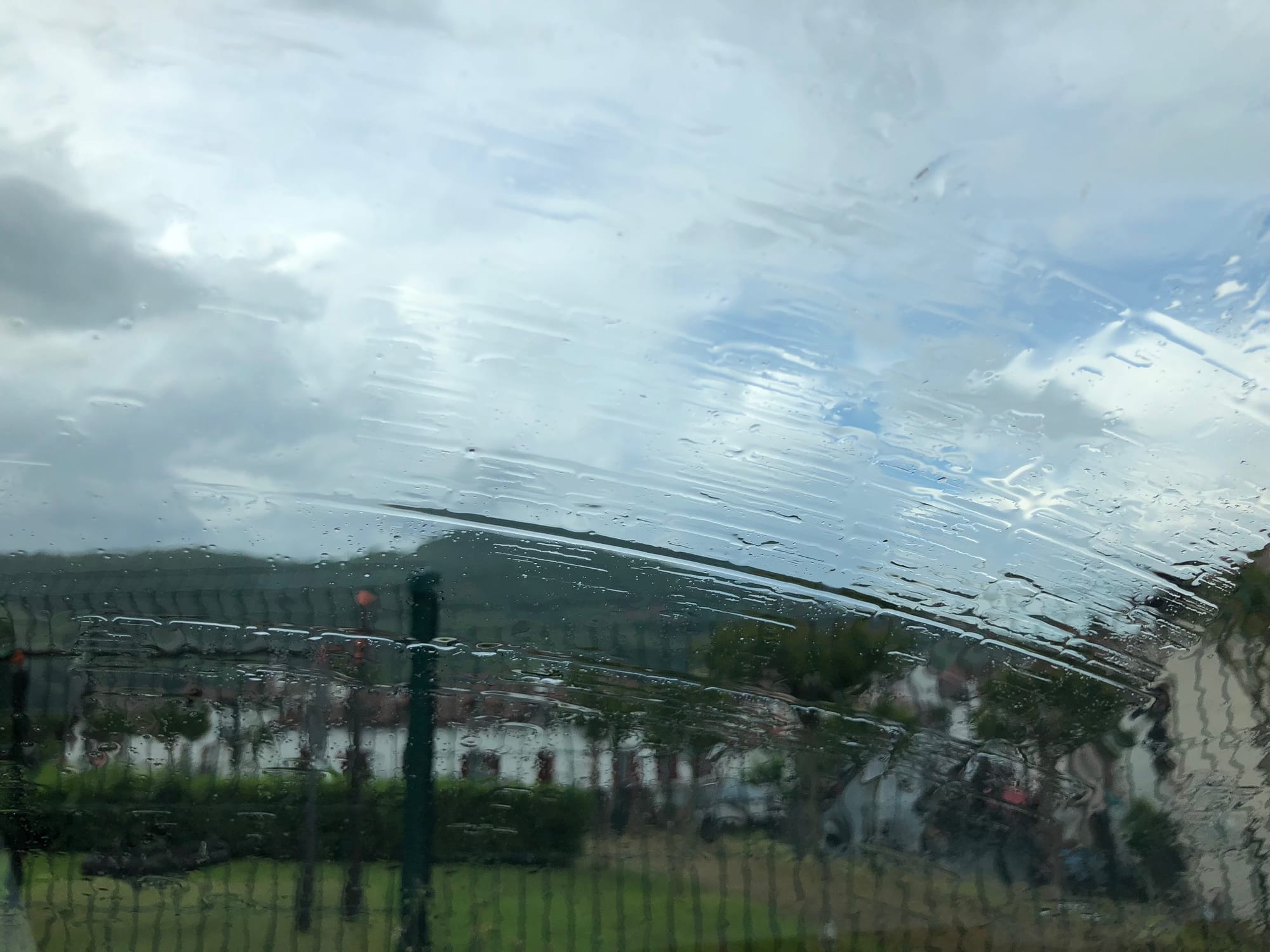 It’s 7:30. We’ve got at least another two hours of daylight. I’m in my car on the far side of that mountain I would see if my apartment were one story higher. The violent storms from earlier today ended a little after lunch. Now the sky is veiled with clouds — grey, purple and white. The sun’s rays pour through the rips in that veil of clouds, illuminating patches of grassy meadows and forests. Occasionally backlighting a solitary tree on a hill as if it were on fire.
