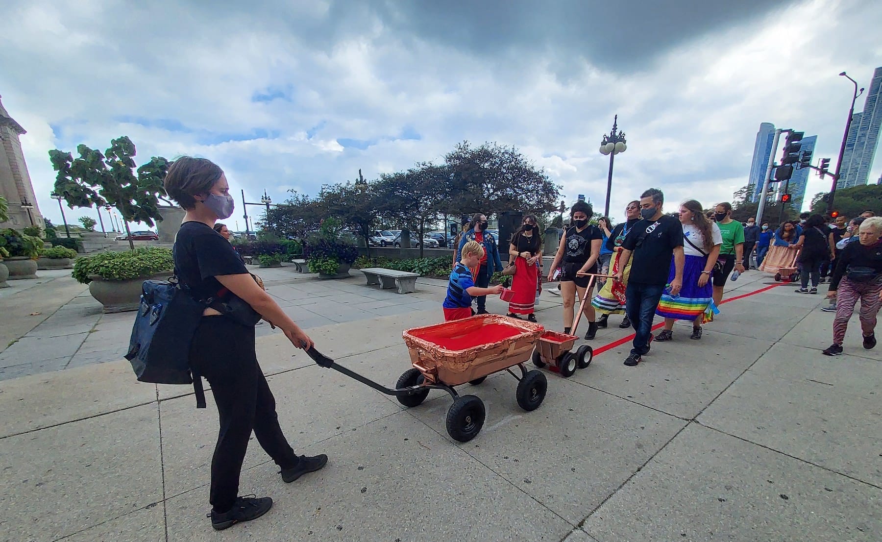 On a more positive note, debates surrounding the Columbus statue and its site have drawn attention to how public space in Chicago has been shaped by celebrations of European settler colonialism. Over the past few years, urbanist movements that are Native-led or Native-inspired have questioned the status of Chicago’s lakefront as, arguably, unceded Native land. In 1914, the Pokagon Band of Potawatomi filed a lawsuit claiming a portion of downtown Chicago east of Michigan Avenue as their land; because landfill constructed out of rubble from the Great Chicago Fire in 1871 did not exist at the time of the 1833 Treaty of Chicago, it could not have been ceded. It was an ingenious legal gambit that went as far as the Supreme Court, which dismissed the case on the questionable grounds that the Potawatomi were not currently “occupying” the land. Whatever the outcome within the US legal system, the case highlights the historical claims of Indigenous people and in particular the placement of institutions like the Art Institute of Chicago, the Museum of Contemporary Art, the Field Museum, and Grant Park itself, on contested territory.