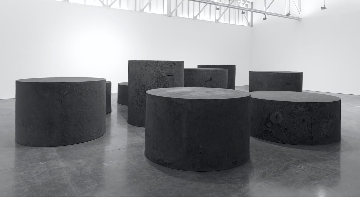 Richard Serra, “Inverted” (2019), forged steel, four rounds, installed in two inverted stacks; two: 48” (121.9 cm) high, 102” (259 cm) diameter; two: 54” (137.1 cm) high, 96” (243.8 cm) diameter; each stack: 102” (259 cm), 102” (259 cm) diameter; © 2019 Richard Serra/Artists Rights Society (ARS), New York, photo: Rob McKeever (courtesy Gagosian)