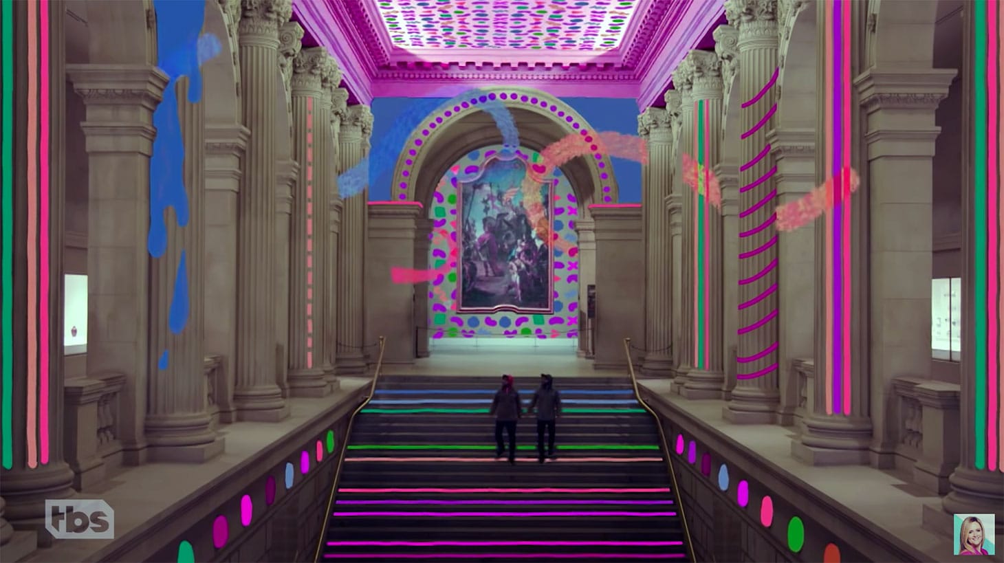 The segment takes a psychedelic turn when the twins drop the museum’s admission tags into their mouths like they would a tab of LSD. A colorful and merry acid trip begins, and the marble statues come back to life. A bearded dark statue asks the twins what the word “racist” means. They try to explain to him the basic concept of hating people because of their skin color, but the sculpture insists: “I have no idea what you’re talking about.”