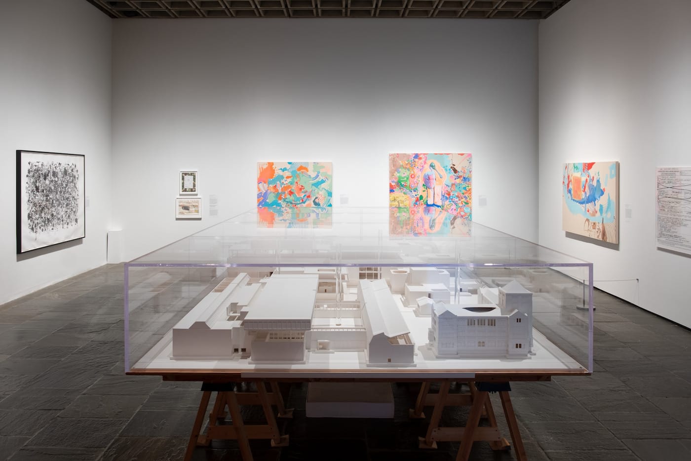 This is especially worrisome in the show’s second half, where the most controversial speculations are presented. Here, we see John Miller’s “ZOG” (1998), which lampoons an enduring conspiracy theory about Jews controlling Western governments by phrasing the acronym within a Wheel of Fortune reveal, complete with a jumpsuited Vanna White. Nearby are Sue Williams’s reactionary paintings about September 11, which are replete with a dizzying array of imagery including genitalia, entrails, black-ops, and the smoldering Twin Towers. These contentious paintings are oddly presented in the same room as Jim Shaw’s “Martian Portraits” (1978), a hilarious takedown of supermarket tabloids supposedly “revealing” the aliens that live among us in human disguise.