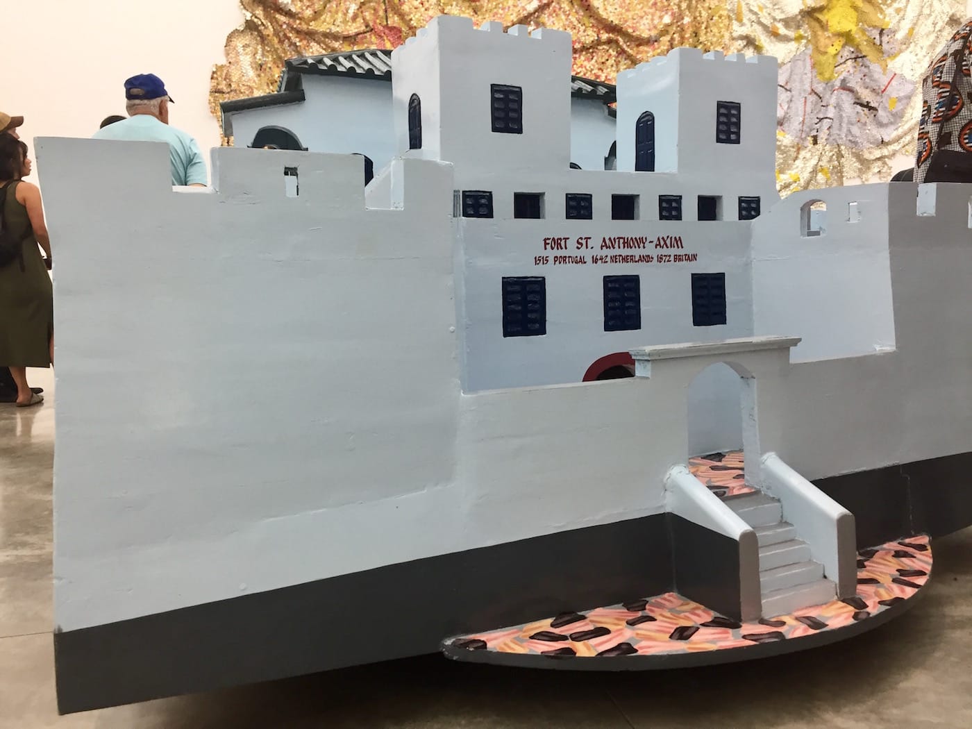 Drawing from the Ghanaian tradition of abebuu adekai, or fantasy coffins, which celebrate the life of the deceased and usher them into the afterlife with pomp, Accra-based artist Paa Joe is well known for his extravagant funerary caskets, the designs of which range from Porsches to chili peppers. His Slave Castle series was commissioned by the late Jack Shainman gallery co-founder, Claude Simard, in 2004, and their presentation this summer marks their public debut. The works represent the European castles erected along the Gold Coast in the 15th century, which were sites of internment for slaves bound for the New World. These purgatories proved the last memory many Africans had of their homeland; for those who didn’t survive the journey, the castles marked their final moments on this earth.