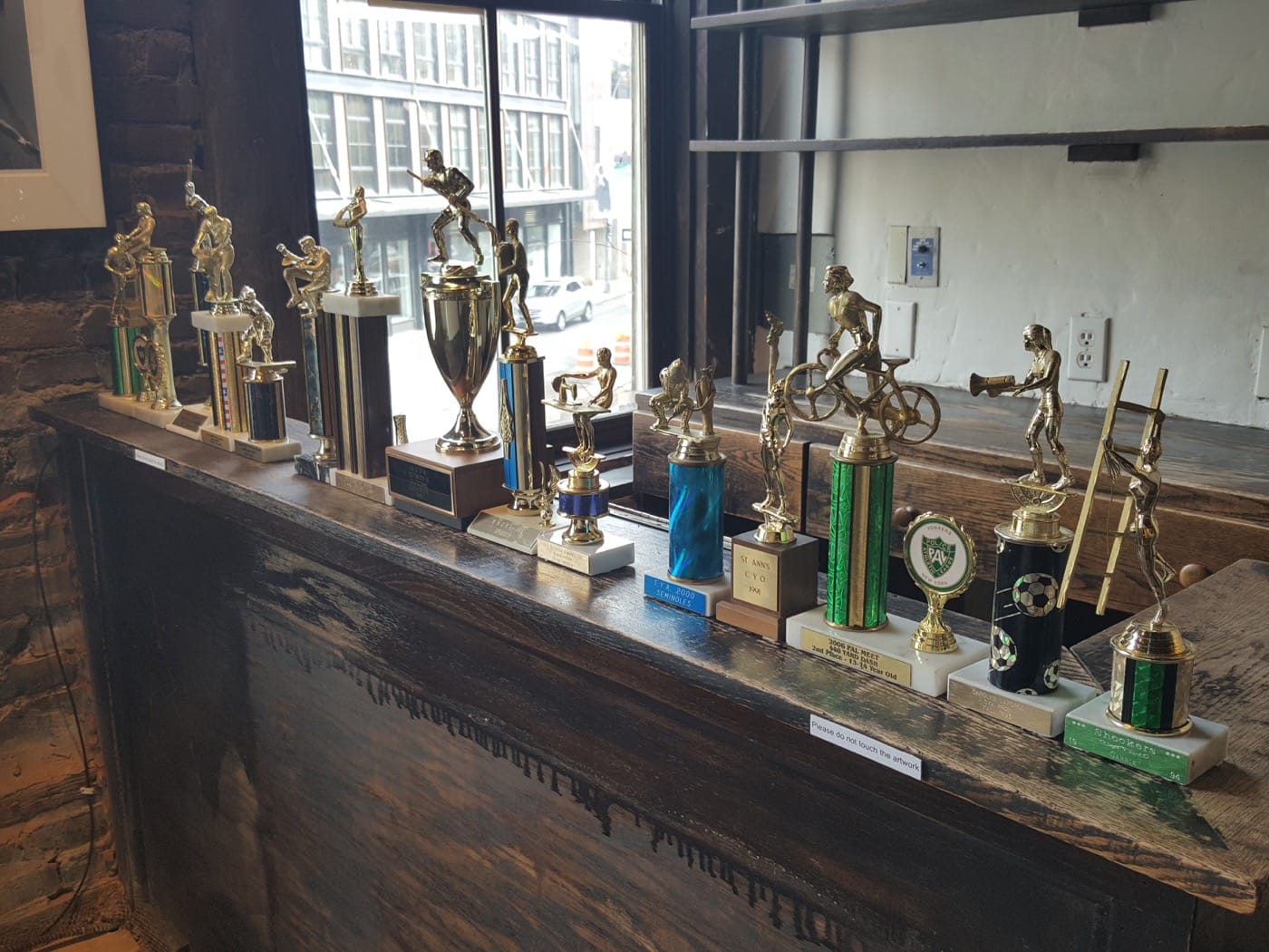 March Madness at Fort Gansevoort cleverly presents the appurtenances of sports: the equipment, trophies, and objects that adorn athletic bodies.