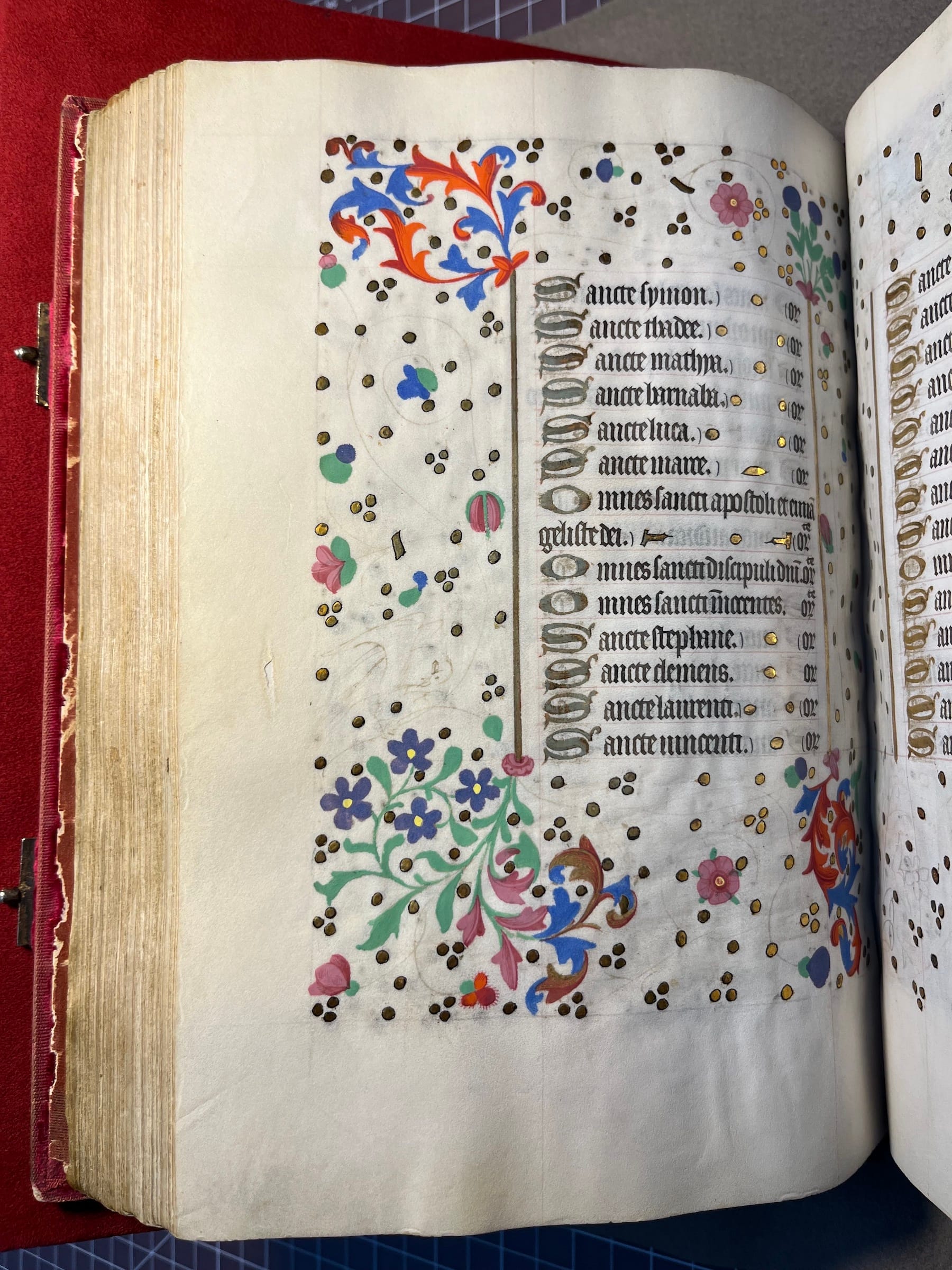 At the stately Morgan Library and Museum in Manhattan, a 15th-century illuminated manuscript lies unfinished nearly 600 years after it was started. Some of the book's pages only feature text and splotches of gold leaf; others showcase roughly painted vines and flowers. A few are finalized except for sketches in the margins, and a handful of folios are fully done. The book's varied stages of completion make it a rare example of this type of manuscript, but also the perfect tool to understand how Medieval artisans crafted their exquisitely detailed works.