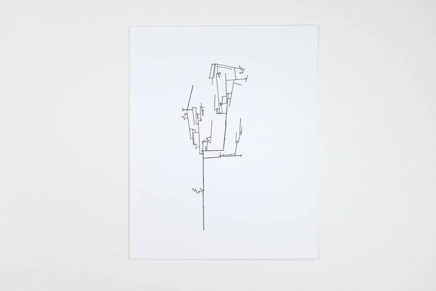 At some point, Conrad asked me: “Did you know that the term ‘tree branch’ refers to the living part of a tree, while ‘stick’ refers to a branch that has dropped to the ground?” What does it mean to take fallen branches from different kinds of trees, join them together, and suspend the result in the air? By using joinery to connect the sections, she draws a line in space. Suspended in the air, its shadow becomes another line.