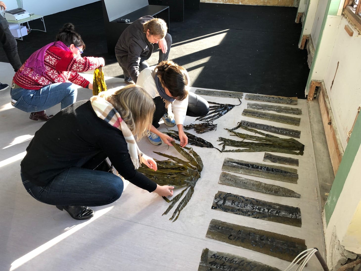 The event began with three lectures: an environmentalist call to arms by author and academic Cecilia Åsberg, a recorded lecture about the poetics of kelp and of our oceans by author Astrida Neimanis; and a performative lecture by artist Sabine Popp, which featured projected footage of marine biologists with her own parallel commentary. I soon gleaned that considerations of kelp touch on feminist issues, that kelp is a post-human planetary ally and that it can encourage us to care for one another. Within the academy, the plant has become a tool for thinking, with more active agency than common sense would suggest, but my theoretical grip on it, at least, remained slippery.
