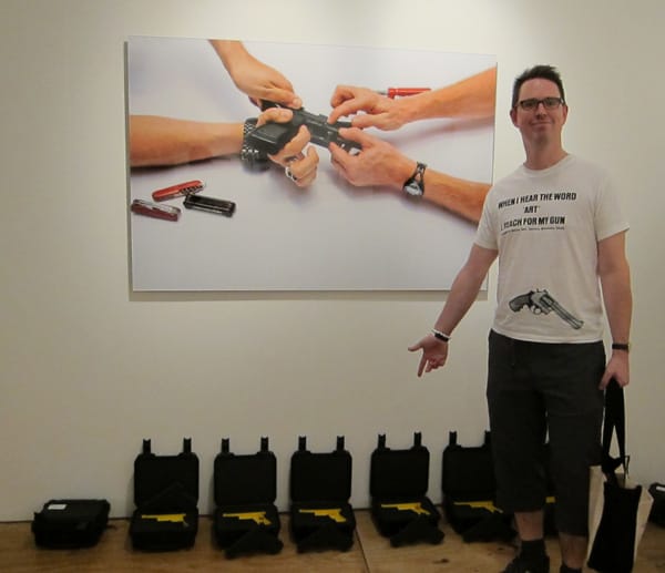 The author's husband, Felix, demonstrating his affinities with the art at Scope.