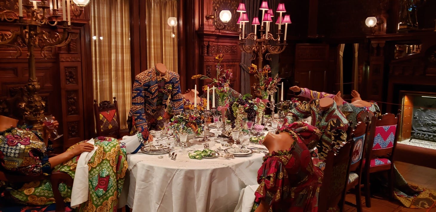 CHICAGO — In one story arc of The West Wing, the political drama created by Aaron Sorkin that ran on NBC television in the early 2000s, Josh Lyman, the White House Deputy Chief of Staff, is shot and critically wounded by white supremacists. Lyman recovers in the hospital and eventually returns to work where he begins to behave in increasingly erratic ways. It’s determined that he needs to speak with a psychiatrist, a trauma specialist: Dr. Stanley Keyworth. At some point during their conversations, the doctor shares the essential marker by which he can tell when Lyman is no longer experiencing symptoms of post-traumatic stress disorder: when he can remember the shooting without reliving it. The memory of this scene washes over me when I visit the Driehaus Museum several days ago to view the current exhibition, A Tale of Today: Yinka Shonibare CBE. Here, the specter that haunts the artist’s imagination is the colonial project.