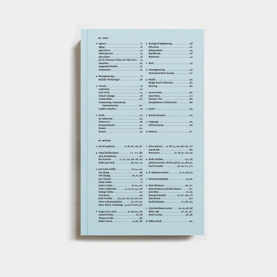 Organized as a thoughtfully curated lexicon of pressing contemporary concerns, Speculations excerpts a gargantuan series of fifty talks by a diverse roster of accomplished artists, scientists, and intellectuals convened for MoMA PS1’s 2013 exhibition, EXPO 1: New York, by Triple Canopy, an online arts magazine known for marrying new media technologies with old media sensibilities. To provide the disparate talks with a measure of unifying focus, Triple Canopy gave each panelist a four-part questionnaire prompting them “to bet on a future you want to see realized.” The fourth question, in particular, elaborates on the nature of the solicited wager: “We’re asking for speculation—rather than, say, prediction or prophecy—for its twin definitions: as a conjecture made without firm evidence; as an investment involving considerable risk.”