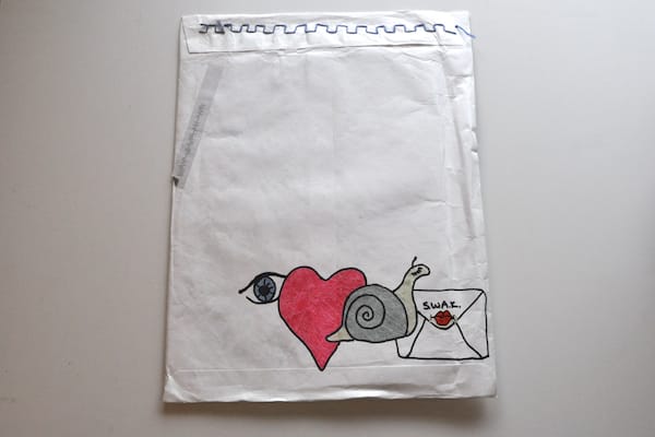 Mail art is a curious way to get to know someone’s work. Instantly you feel more comfortable when you receive it — at work, in your own space — and you forced to deal with its physicality, often feeling very personal and immediate. You also have a sense of ownership over it and you often even feel an urge to preserve it, like an artifact, it is art after all. This is very different than going into a whitebox gallery or other more formal art space. Even online there is no sense of ownership of the art you encounter, though you can visit any time you wish.