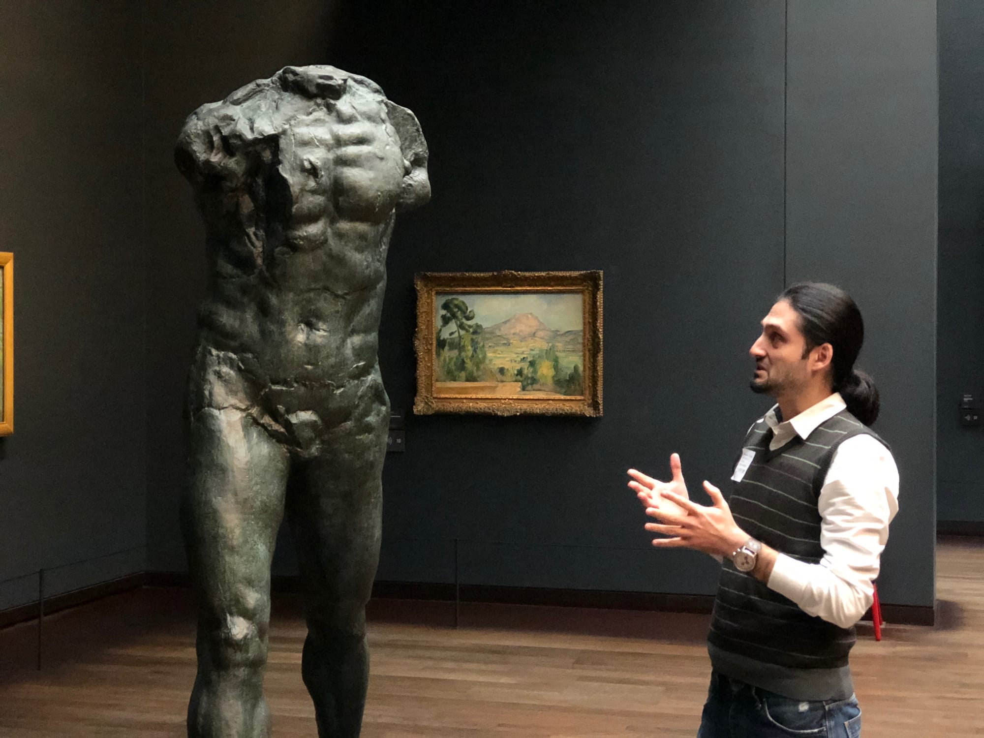 Condé’s practical experience has included stints at the Louvre, l’Orangerie, and Fondation Louis Vuitton. He’s now a museum officer at the Musée Maillol, where he guides tours, assists visitors, and watches over paintings.