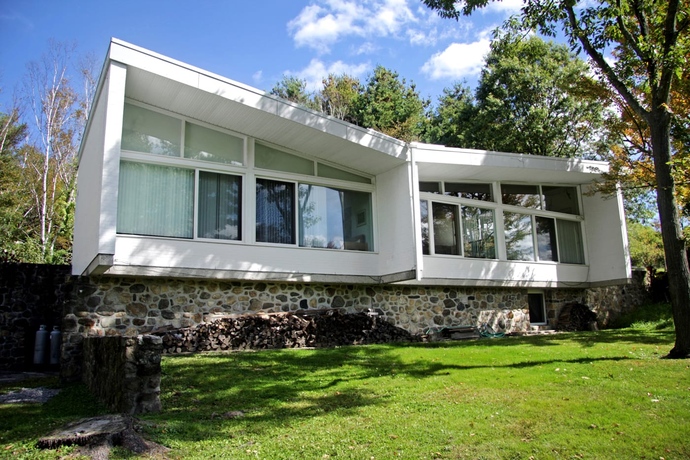 Author James Crump aptly lays out the intersecting lines between Breuer’s roots in the Bauhaus; the resettling of him and his colleagues around New York City in the grips of pre-WWII unrest; and the power of the Museum of Modern Art (MoMA) to catapult their ideas about Modern architecture into the zeitgeist. Breuer was commissioned to create House in the Museum Garden, a 1949 installation in the MoMA’s courtyard, which Philip Johnson (whose legacy is lately under scrutiny due to his vocal support for Nazism) then director of the Department of Architecture and Design, conceived as a high-design answer to the Lustron House, an all-steel model tract house that was bidding to claim the burgeoning market of prefabricated housing for returning GI’s and their young families. His work at MoMA put him on the radar for a new wave of progressive couples looking to commission dream homes, and subsequently launched his previously-struggling architecture firm into the black.