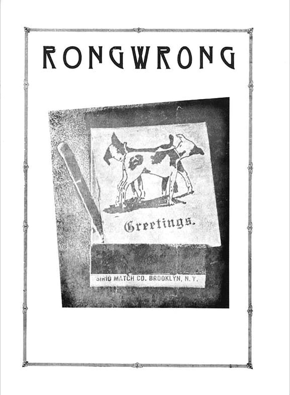 Also included in the boxed set is a copy of Rongwrong that briefly appeared in May of 1917, following the early demise of The Blind Man (which ended as a result of a Roché losing an infamous chess match to Picabia). Also edited by Duchamp, Roché, and Wood, Rongwrong contains contributions from Arensberg’s circle of writers included in Others: A Magazine of the New Verse. The Rongwrong title is a printer’s error (it should have been Wrongwrong) which Duchamp gaily accepted with his spirit of welcoming chance operations. Every Dadaphile with an eternal gaze needs The Blind Man: New York Dada, 1917.