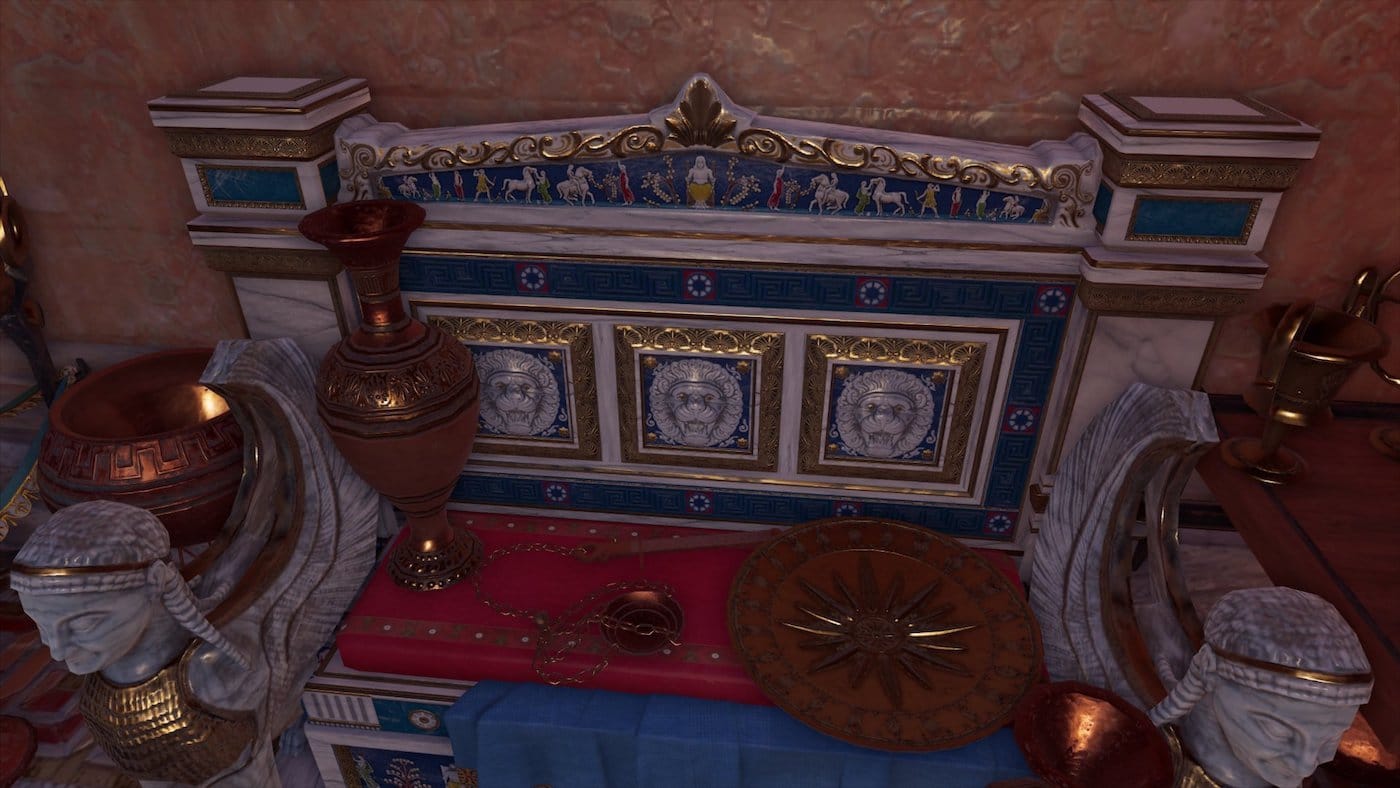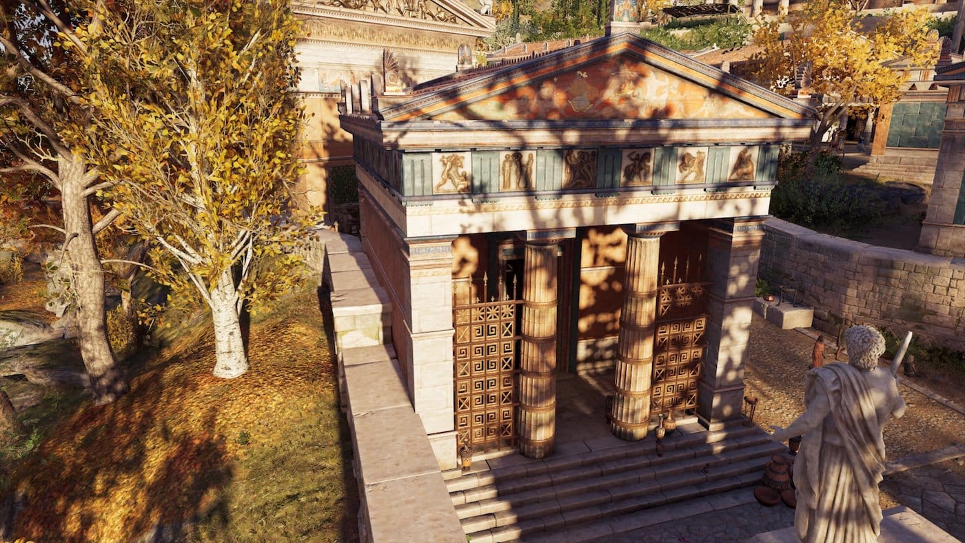 Naturally, the development team behind Assassins Creed had to take some artistic liberties when recreating Ancient Greece ahead of its deadline. Arguably the game’s worst offense is its replication of several sections in the Parthenon frieze on random buildings and pedestals. “Rubber stamping” these scenes onto objects is a quick decorative solution, but one that can be obvious for players with some basic art historical background. This can lead to some humorous results. For example, the Sikyonian Treasury may be fantastically rendered in its precise location at Delphi, but its famous metopes are missing. Instead, developers have replaced them with the canonical images of Hercules’s labors, which belong to the Temple of Zeus at Olympia. More ironically horrible is seeing frieze reliefs from the British-looted Elgin marbles scattered across the Greek countryside on various temples and pedestals.