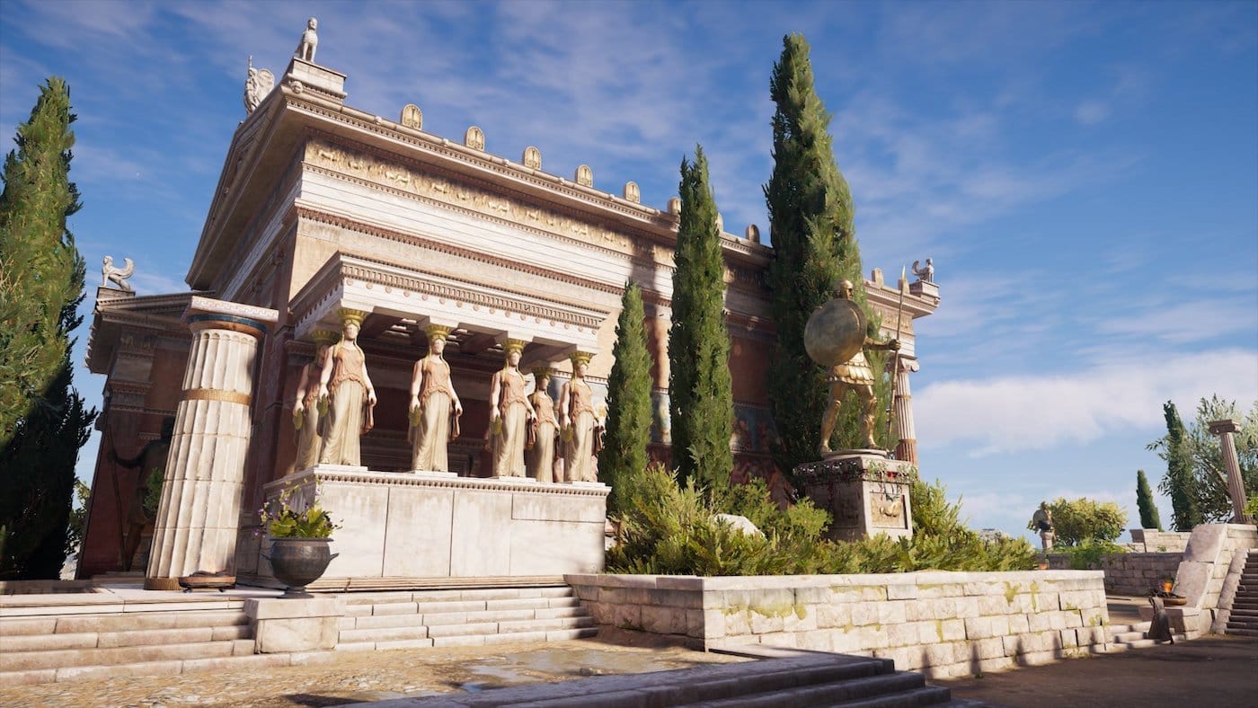 The latest entry into the Assassin’s Creed franchise, subtitled Odyssey, drops players into 431 BCE in Ancient Greece, at the start of the Peloponnesian War predominantly fought between Athens and Sparta. For a video game that includes bloody mercenaries, extraterrestrial beings, and time travel, Assassin’s Creed: Odyssey is shockingly faithful to our contemporary historical understanding of what Ancient Greece looked like during its golden age. The Ubisoft development team behind the game even hired a historical advisor to help them recreate a meticulous version of the Ancient World, one that includes hundreds of polychromatic statues, temples, and tombs.