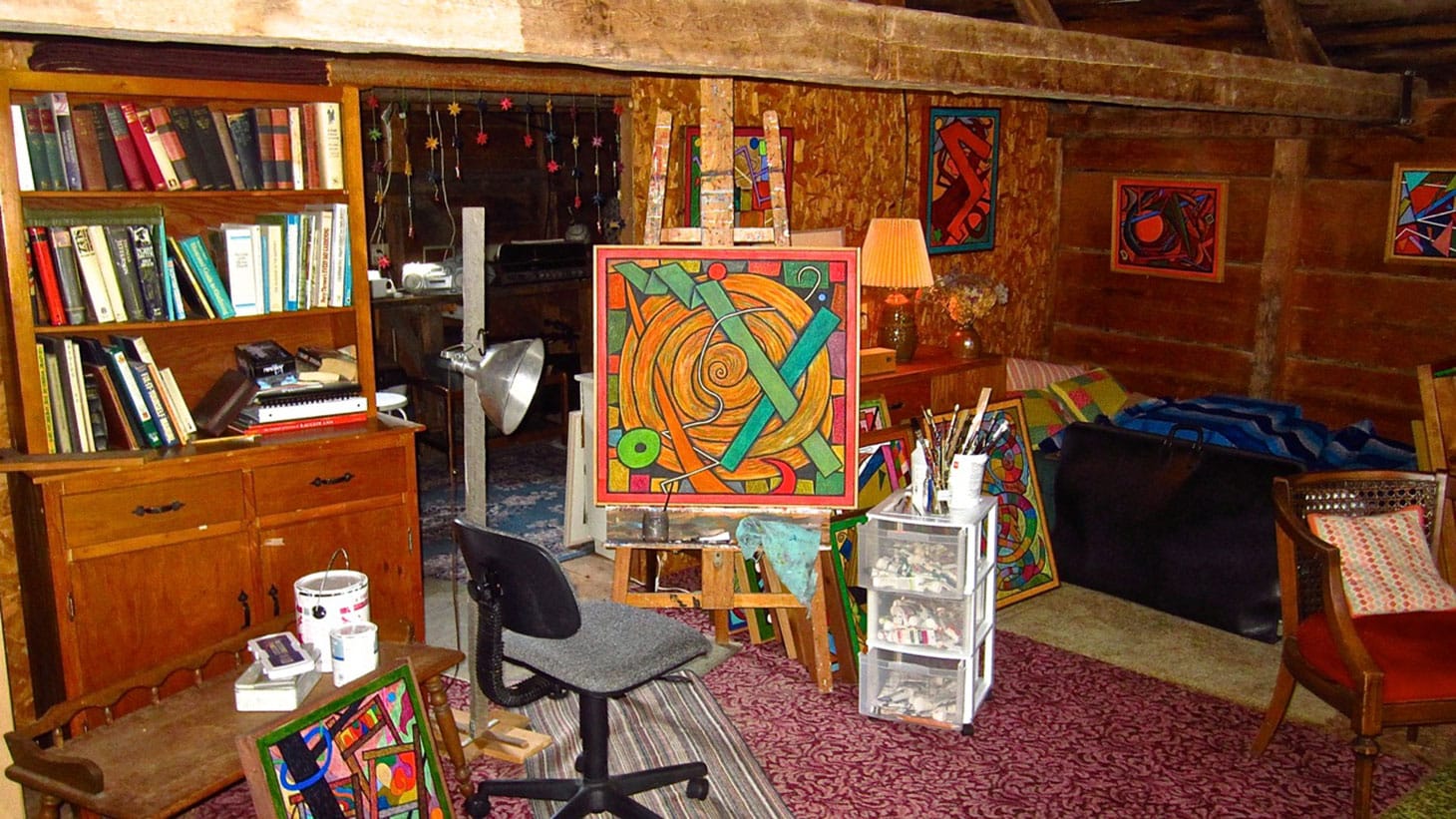There is plenty of room to store paintings, and in a room below I have tools I use to build stretcher bars for my canvases and framing. The south side looks out over the Annapolis River, and in the summer I get marvelous breezes blowing through. I even have a cot there, in case I need to nap.