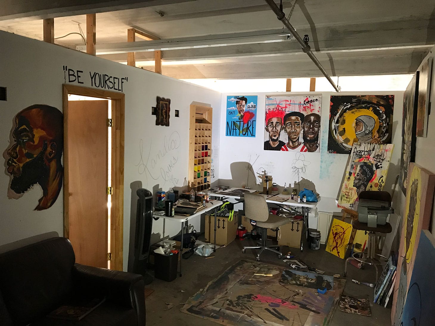 I’m a visual artist based in Jacksonville, Florida, and this is my studio space. It’s situated in a 100-year-old warehouse that used to be a grocery manufacturer. The warehouse is now home to multiple artist communities, a recording studio, photography studios, small businesses, and a boxing gym.