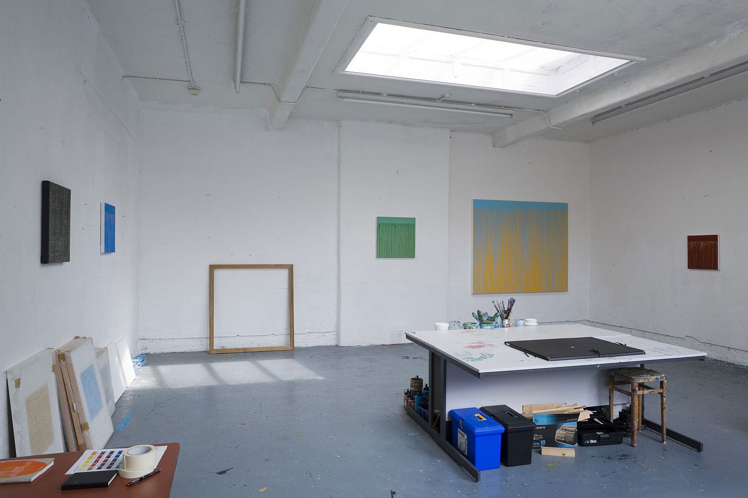 My studio is a converted fire house in East London, in an industrial part of the city near to the former Olympic Site. It is a large, square space (around 550 square feet). The light in my studio is a constant source of inspiration. There is a skylight in the roof as well as a wall of windows. For an abstract artist, this is a very clean, clear space to work in and the best studio I have ever had.