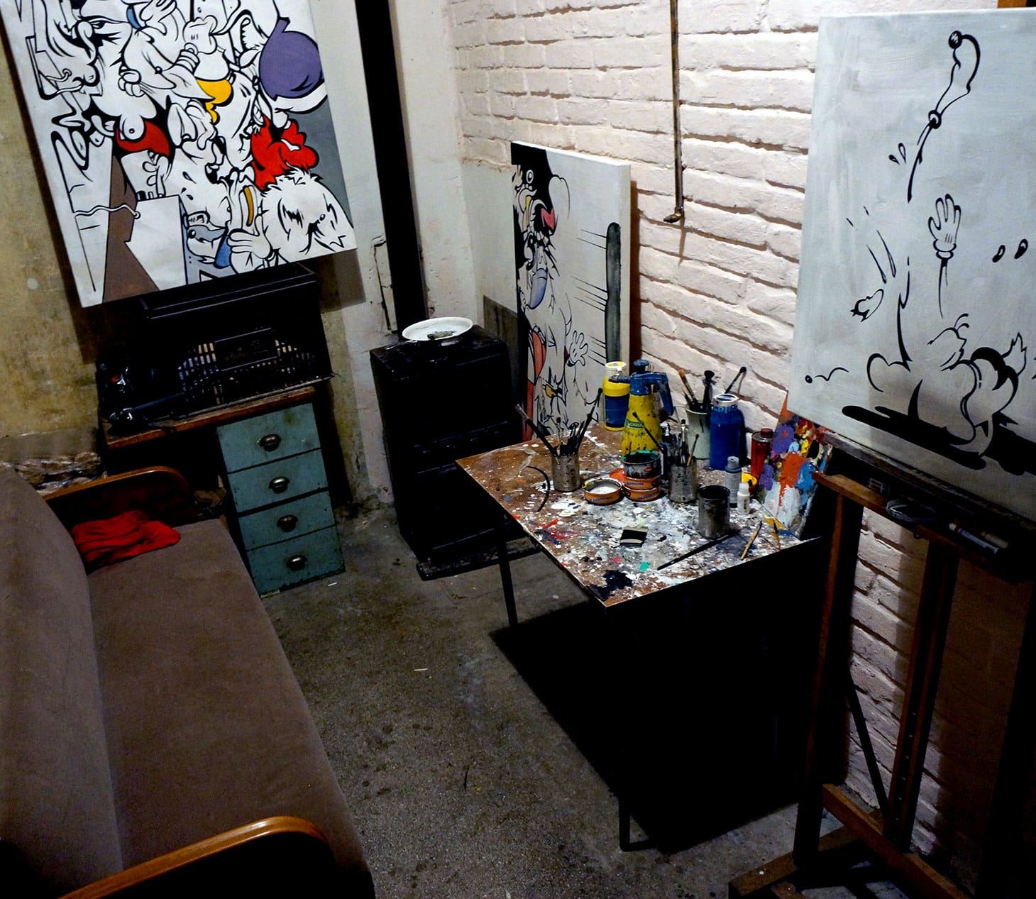 This is my studio in the backroom of a former seedy bar in Vienna, Austria. When I got the place, there was a thick brown layer of nicotine on everything inside, like varnish on old paintings. It’s my 40 square-foot playground — no sunlight, no room for all my stuff, but this is where magic happens with me.