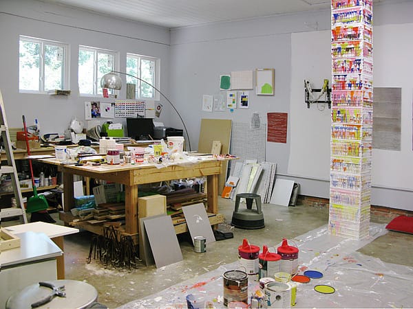 Right now the studio is very messy, meaning I’m in it a lot. My practice is sporadic — slower during teaching months and intense in the summer. On the other side of the windows is a lovely, shady garden. I go there to think, take a break, visit or write.