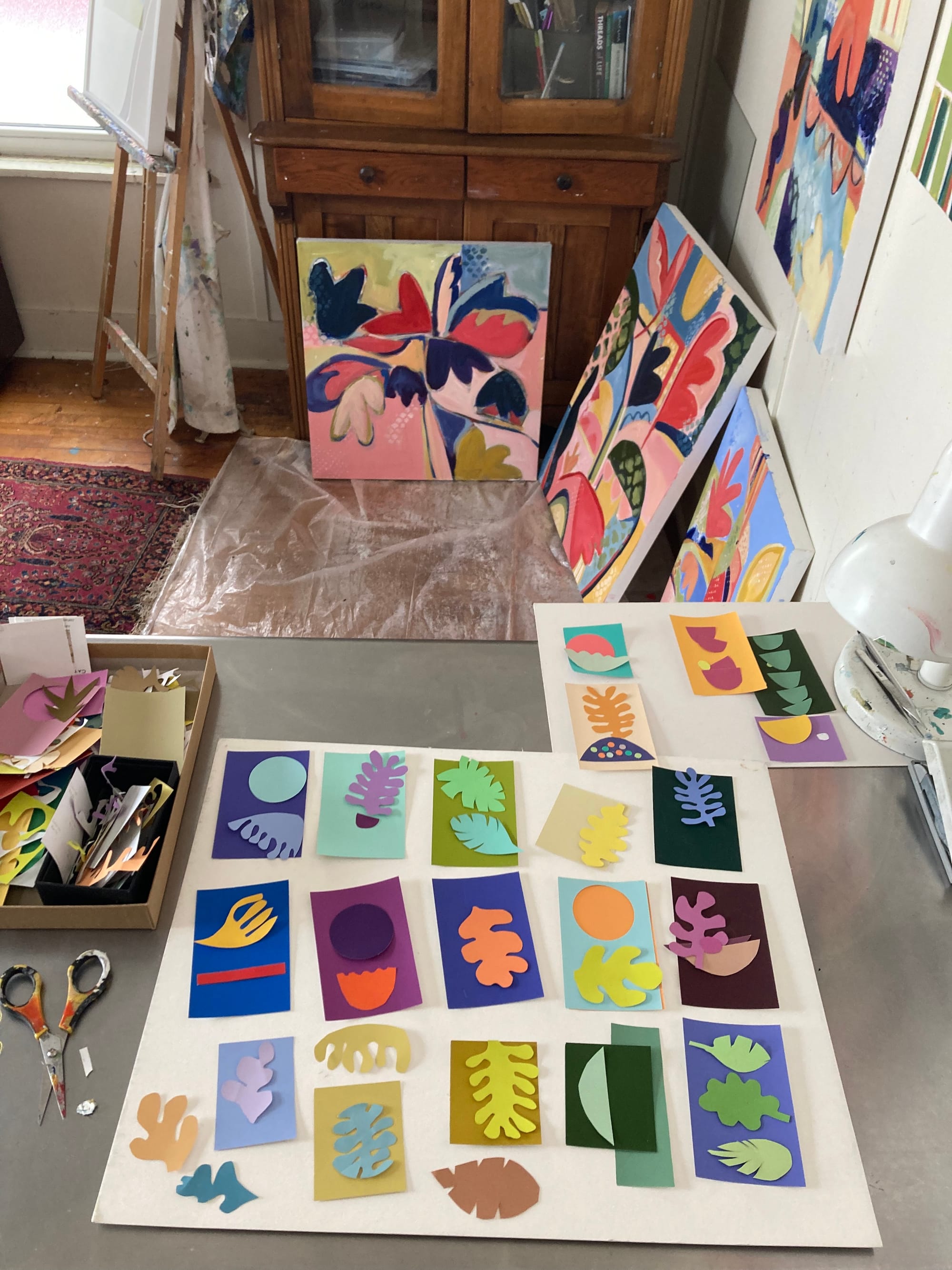 I work daily — but don’t keep a set schedule. My most productive times are between 10am and 3pm. I usually work in the quiet. I like working with multiple mediums, and then focusing on one thing and running with it. During the pandemic, I did make a Spotify playlist called Pandemic Dance Party to get me motivated. Every once in a while, I still play it.