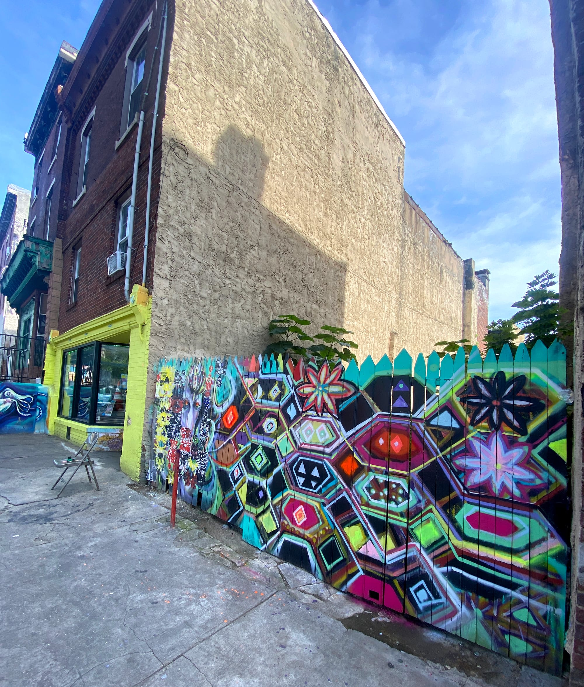 I live on a block in the Kensington Badlands of Philadelphia and art is transforming the block, which Rocky lived on in the original movie, into a working-class arts neighborhood. I paint, draw, and make digital design in my apartment, and I have a project space on the ground floor with a storefront that I use as a community arts space, gallery, and studio. I am never not making or daydreaming of art. I paint murals on the block, paint the exterior of properties, and maintain a community garden set up by New Kensington Community Development Corporation (NKCDC). I listen to the radio as I create, Temple Jazz 90.1 — they play Rufus Harley and Moondog and other under-recognized titans of sonic spacescapes.