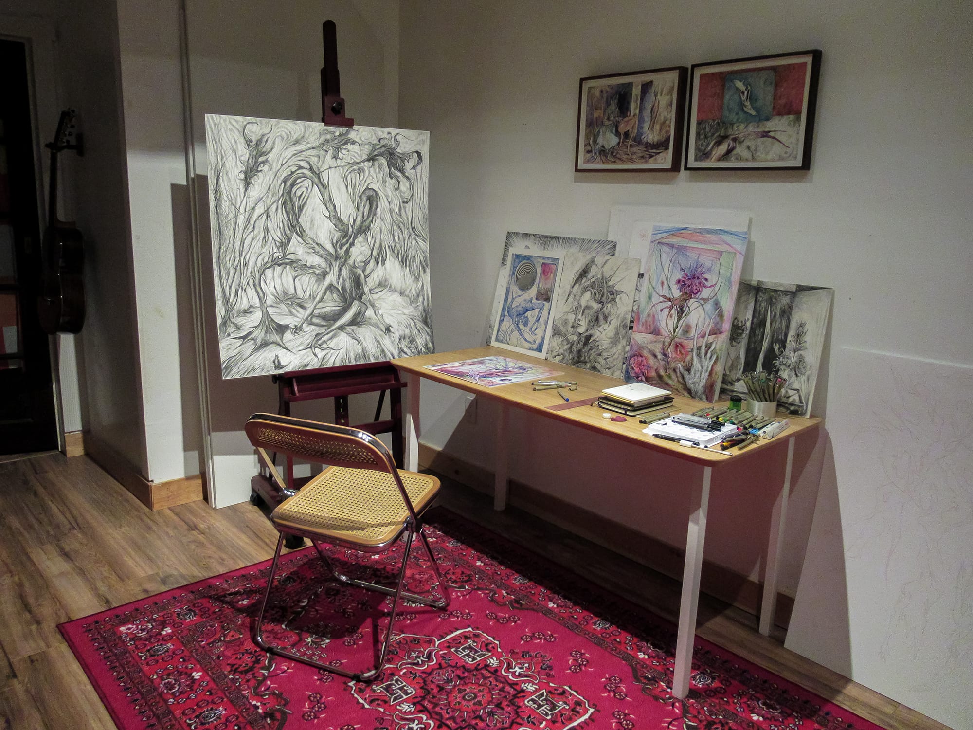 My space is also my home and it's been this way for the past seven years or so. It affects my work in the sense of proximity and accessibility.