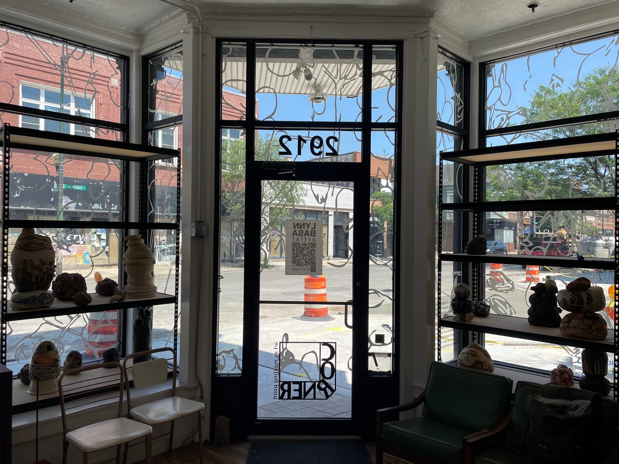 My studio is in a corner storefront of a former sausage shop in an old building in Chicago's Avondale neighborhood. Until this space, my studio was always in the basement of wherever I lived. Having more light and space immediately allowed me to make larger work, which I didn't even know I had in me. It also made me more confident to have studio visits.
