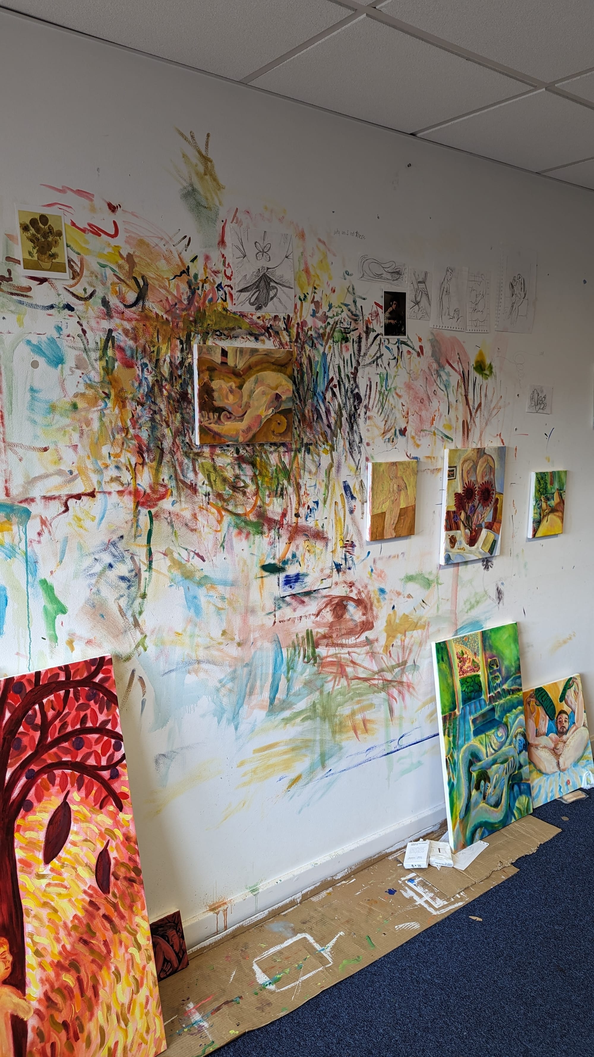Sunlight, windows, security, privacy. I've come here almost every day for two years and spend almost as much time here as I do at home. But the light is probably the best thing. When it's sunny outside it's sunny in my studio. I love being able to open the window so wide that it convinces me I'm not poisoning myself from my materials, but I don't know if I'm just being delusional. It's managed really well by Arebyte Studios, who are a group of artists themselves, so you feel like you're being listened to and taken care of, which is super rare in these spaces that take advantage of artists. Princess Diana also opened the building. Legend.