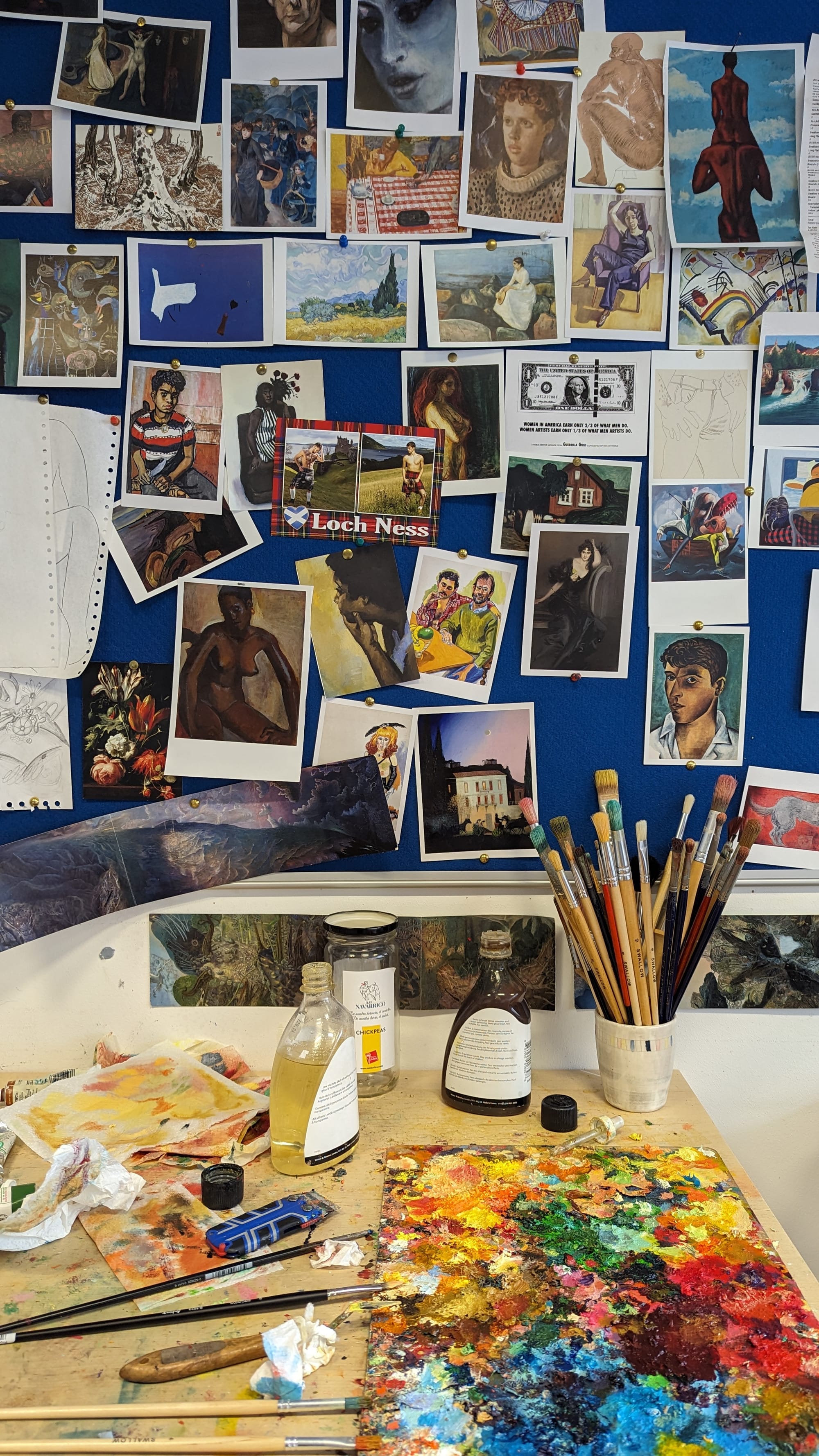 It is mine. Everything in my studio is part of me. It's like a 10-by-14-foot brain. I love the freedom to be able to play around with ideas, and no one gets to see them unless I invite them in. My process is really messy, so I love that I can make a mess! I love the community and the feeling that I am working every day to become a better painter, in a space that is only for one thing: painting.