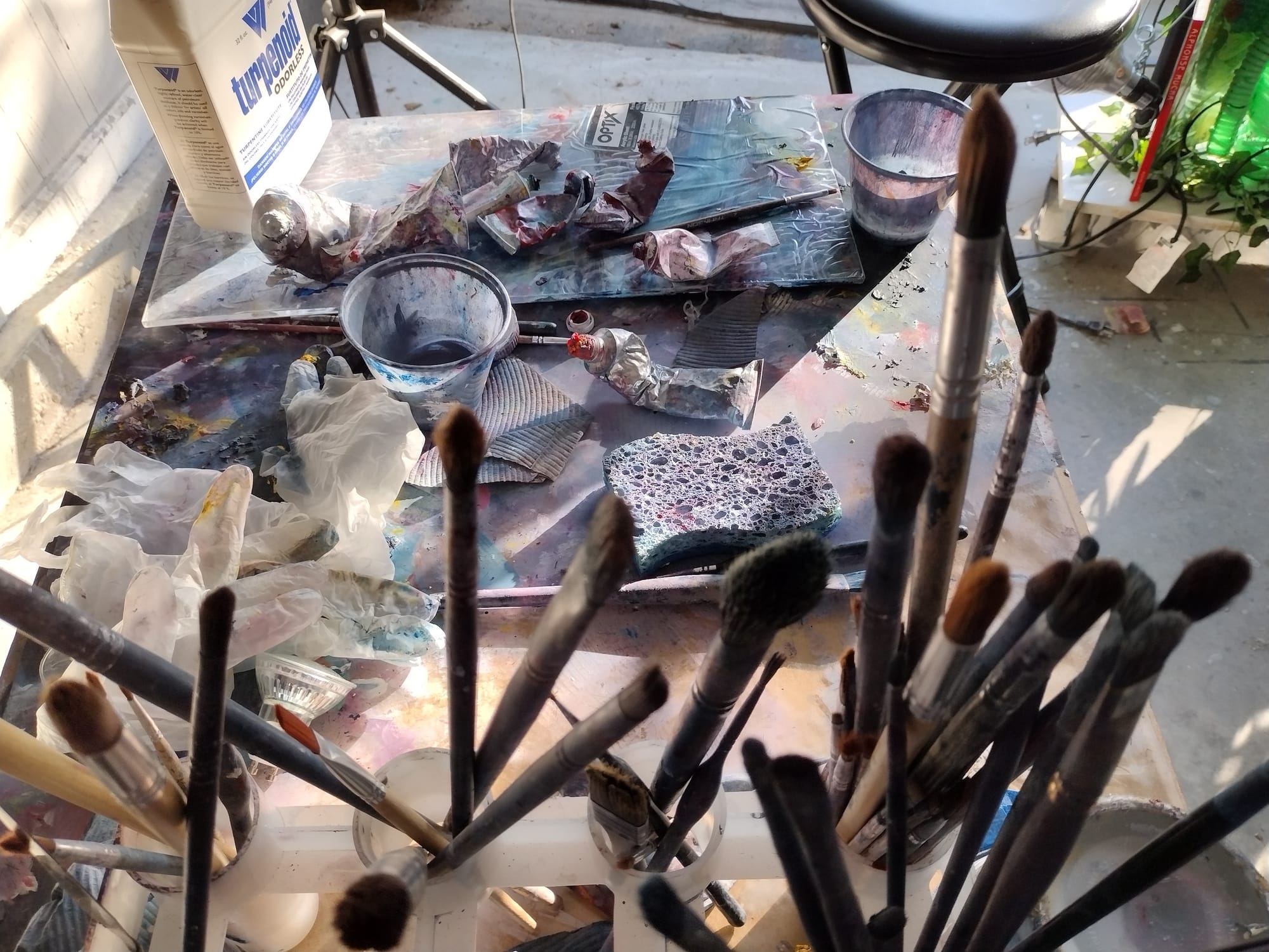One adjustment I’d like to make to my space would be to have more windows and wall space, and better lighting, which is a goal for the immediate future. However, being able to open the garage door and have the sunlight come in is a quick and manageable fix, which is why I prefer to work in the warmer months.