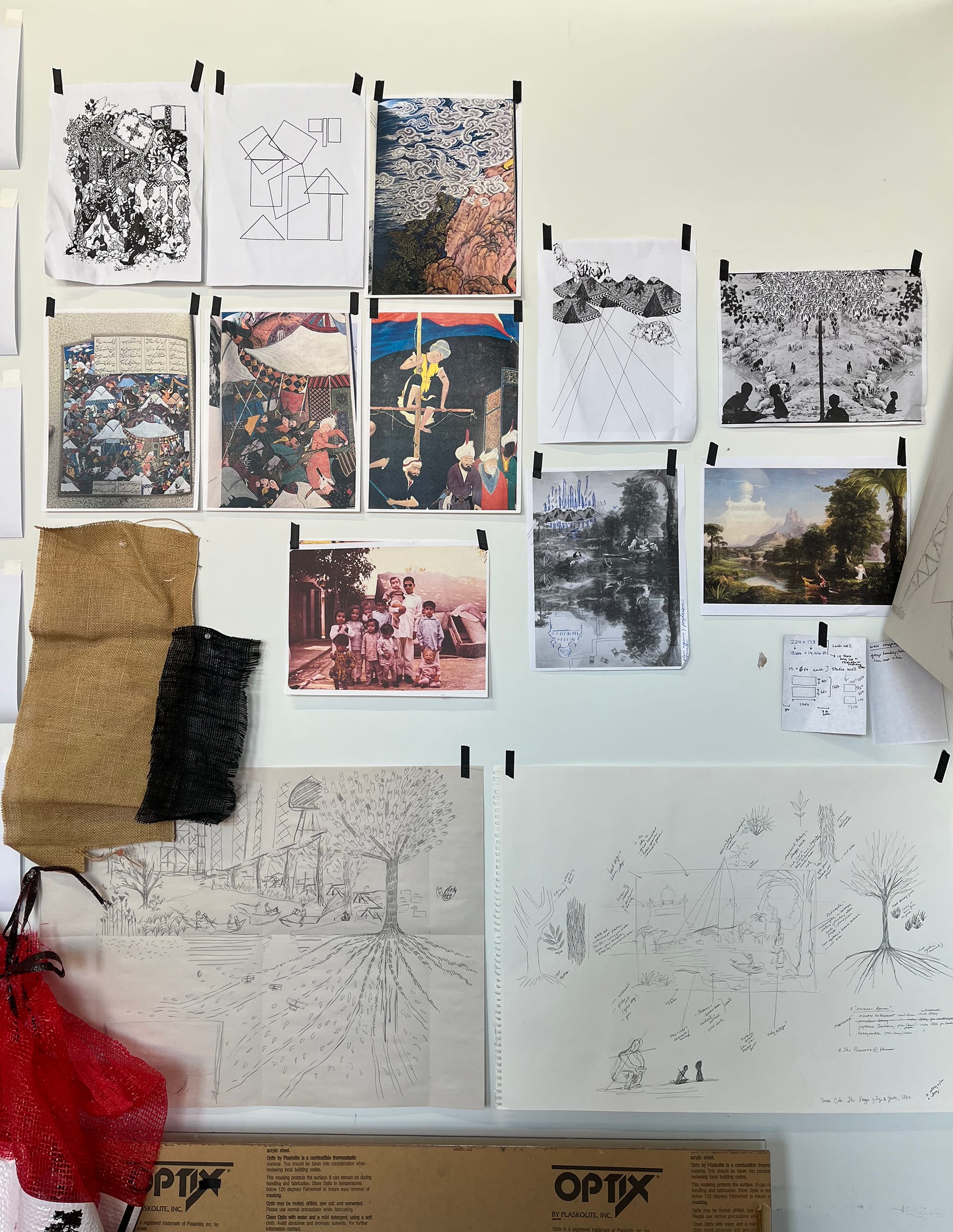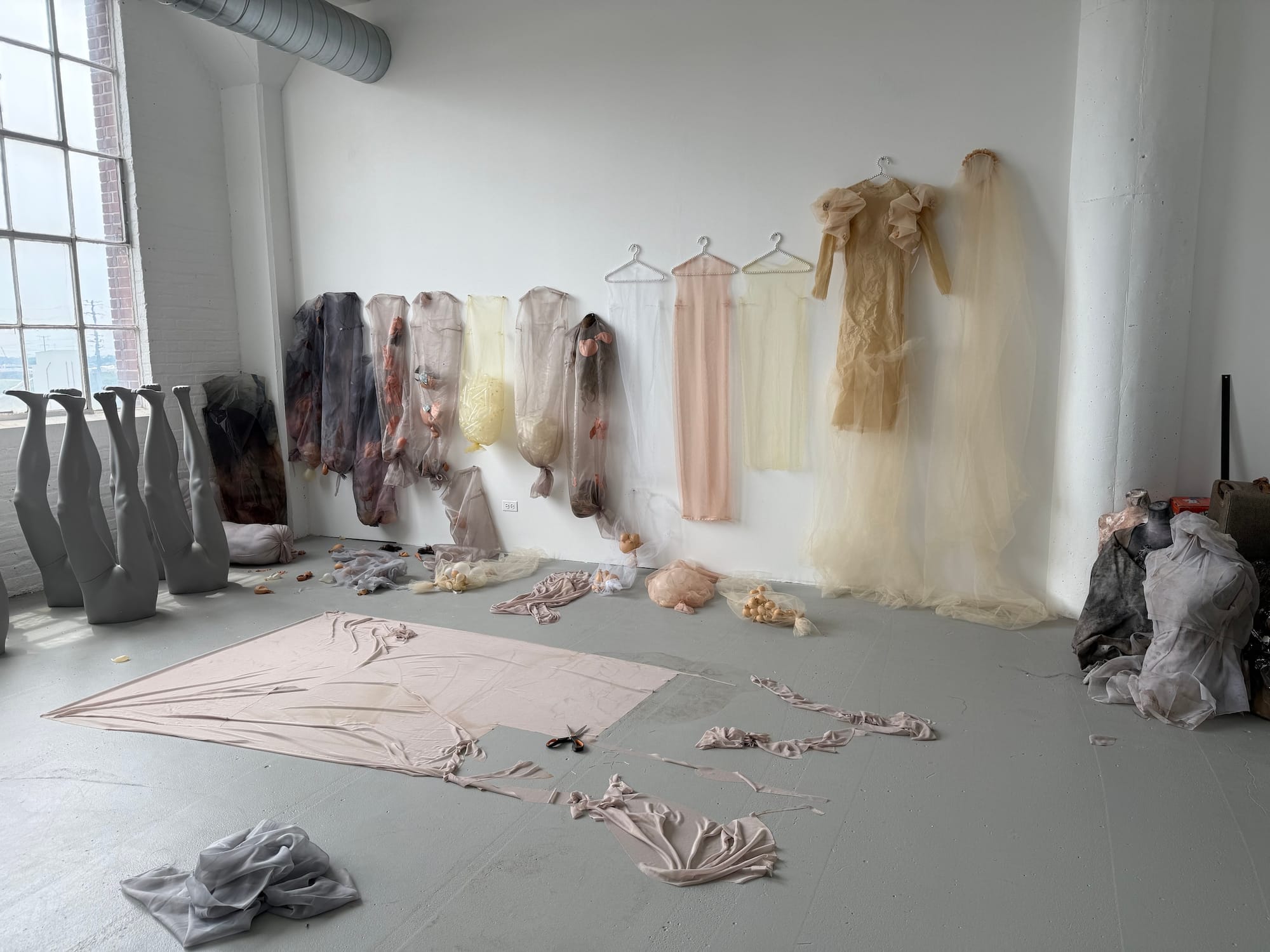 Whatever is in my line of sight influences me, whether it is unfinished work, scraps, a sound, or a passing thought. In grad school, my studio was windowless and underground. I lost all sense of time. Now, with these beautiful windows and natural light in my new studio, I feel more open. Seeing the sky changes my mood, and I think that is starting to shift the work too.