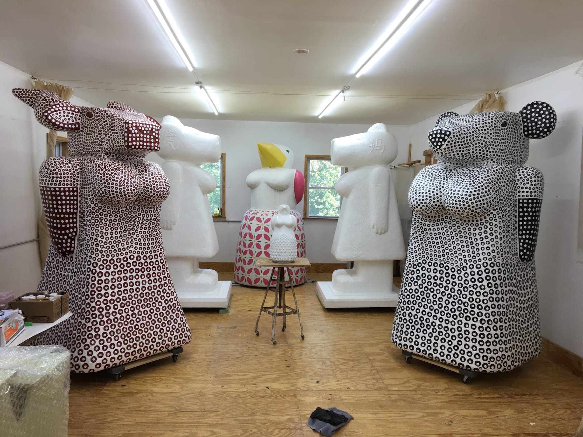 Currently my space is very large so I can spread out, move my carving bench to the center of my studio, and bring in logs to season and dry before I work on them. In addition to my woodcarvings, I also do my large scale outdoor public art, so my space is ideal for that scale up to 10 feet high. For the Myth Makers monumental bamboo public art work that I create with my husband, Andy Moerlein, we have to rent warehouse spaces with 30-foot-high ceilings.