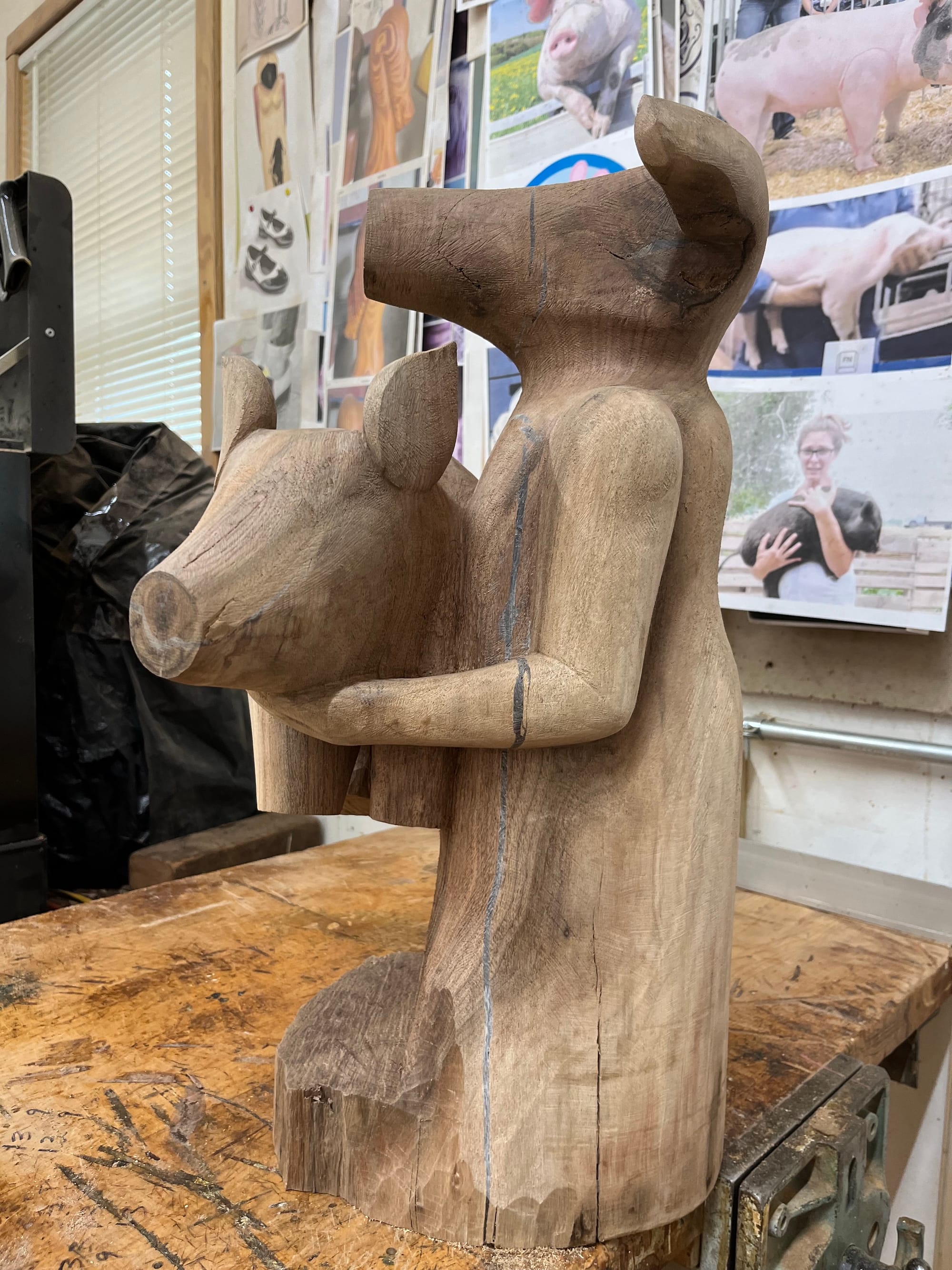 The woodcarving bench in my studio once belonged to my grandfather, who used it for butchering meat. He bought me my first chainsaw and my work apron and he supported me in my life's work of making art, so I love all of those connections in my studio.